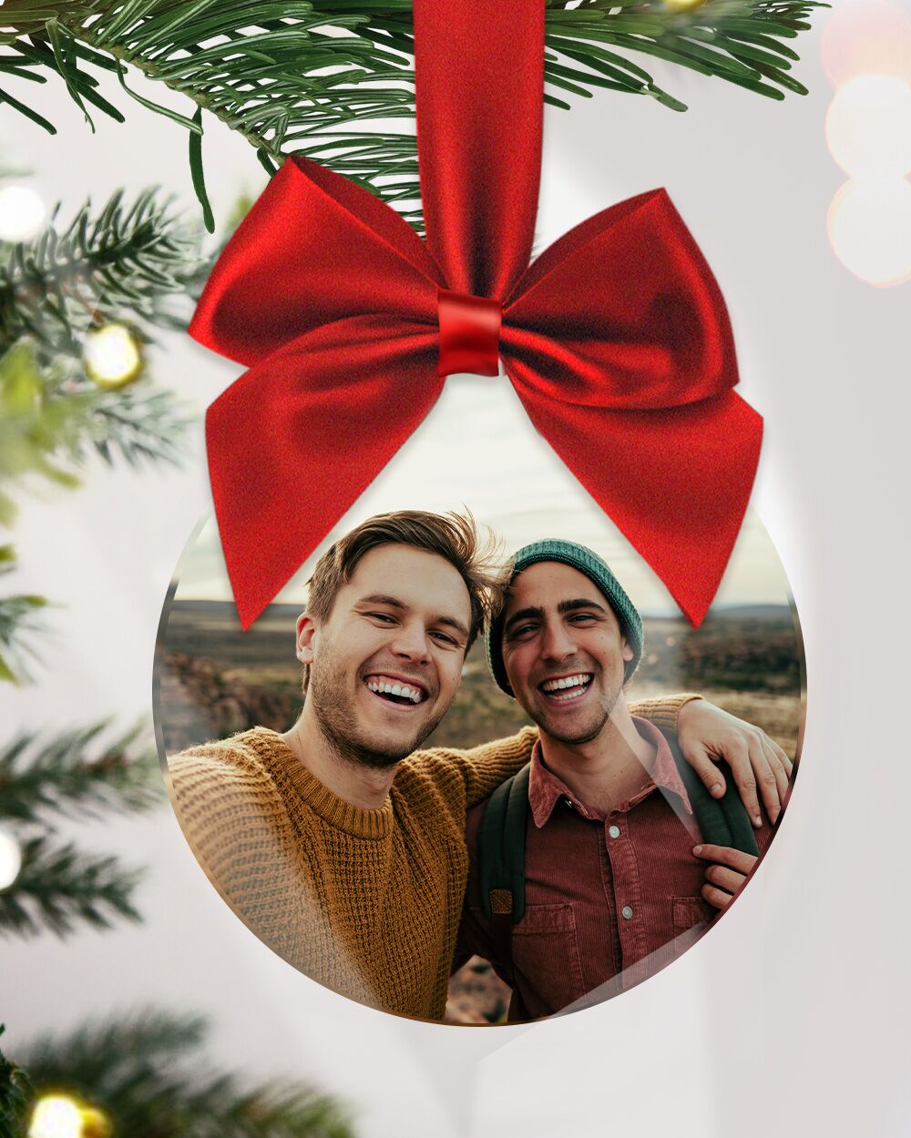Incredibile Pallina Decorazione per Albero di Natale stampata con la tua foto insieme ai tuoi amici del cuore. Stampata in alta qualità su una pallina dall’effetto lucido e fotografico, è adornata da un fiocco di splendido raso. Questa pallina sarà un perfetto regalo natalizio per tutti i tuoi amici di una vita.