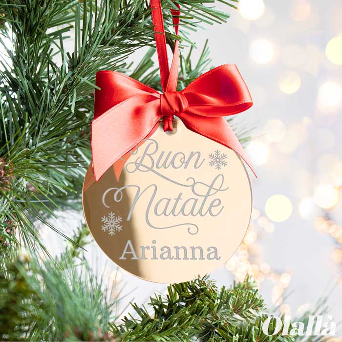 Bellissima ed elegante pallina di Natale in plexiglass personalizzabile con una breve dedica e il nome della persona a cui la regalerai. Scegli anche il colore della tua pallina tra quelli disponibili!