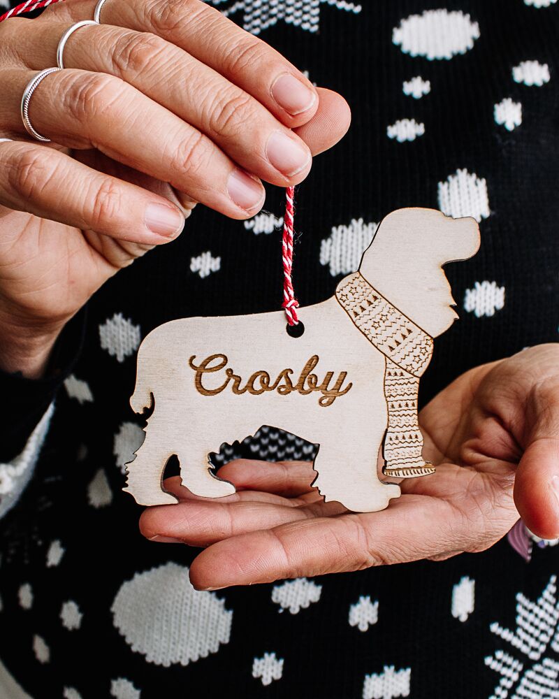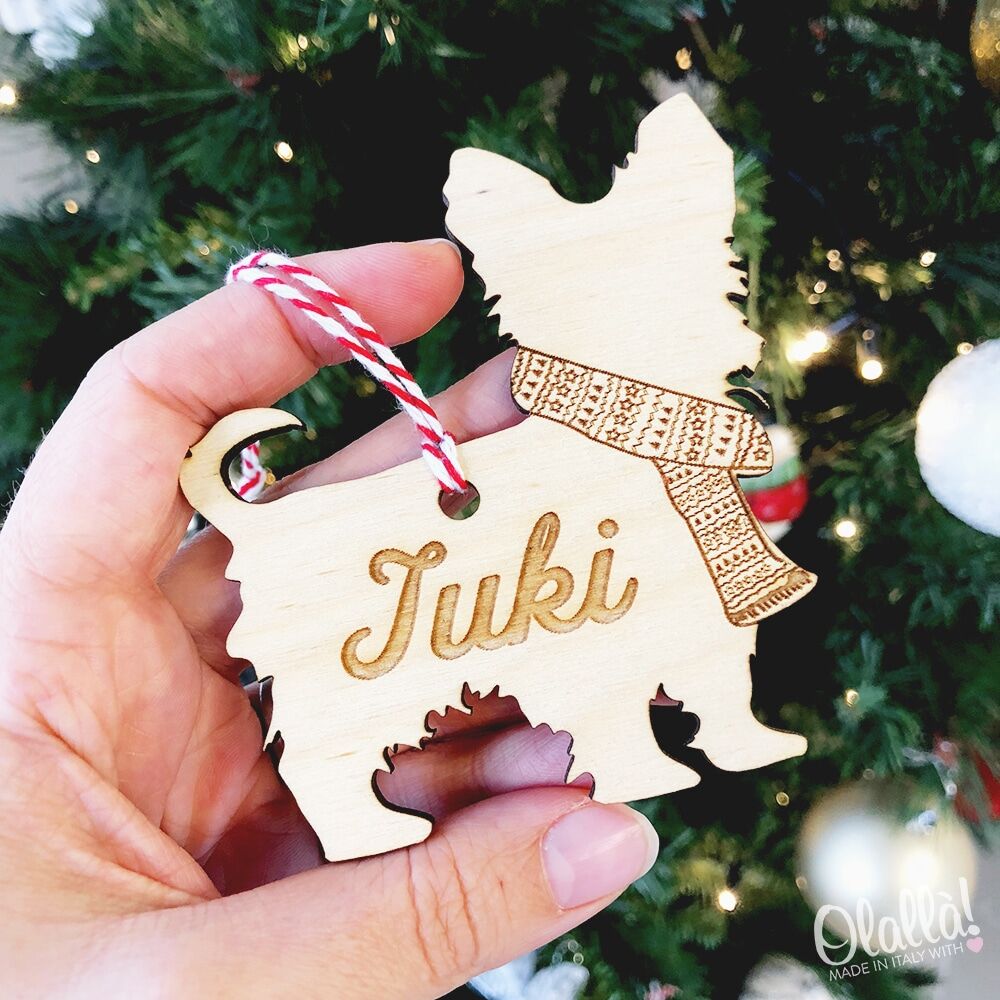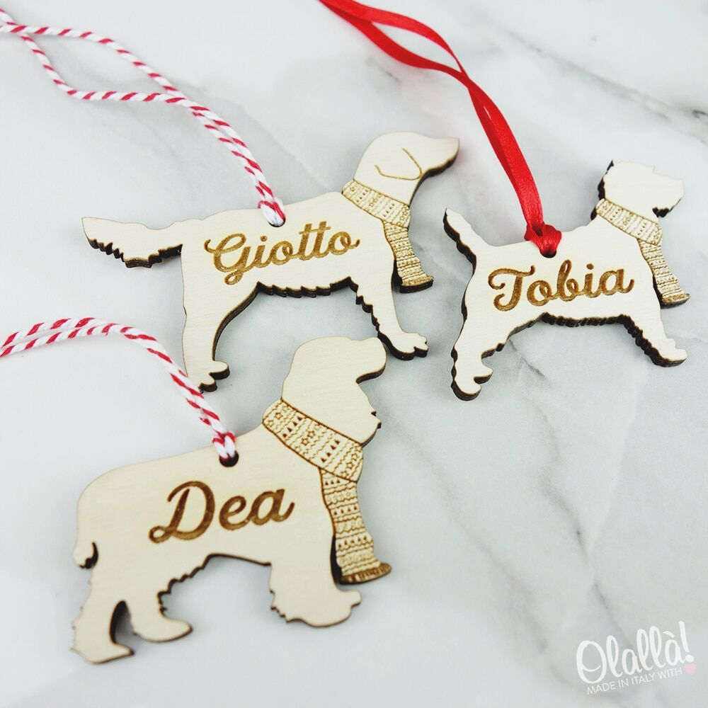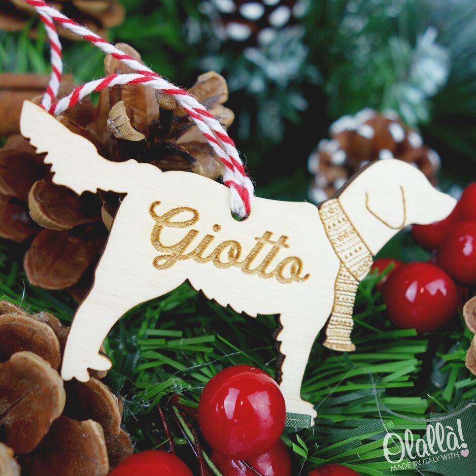 Per personalizzare questa fantastica decorazione in legno indicaci il nome del tuo amico a quattro zampe e la razza di appartenenza (es. Pastore Tedesco, Chihuahua, Cocker etc..), compilando i campi richiesti. Se hai delle esigenze particolari o hai in mente un progetto speciale, per esempio ti piacerebbe personalizzare questa decorazione per il tuo gatto, scrivici a servizioclienti@olalla.it e creeremo per te un regalo spettacolare!