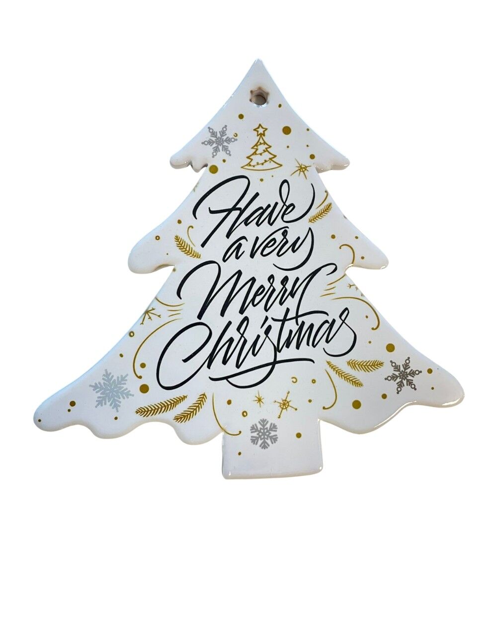 Aggiungi un tocco elegante e festoso alla tua tavola con questo splendido decorazione natalizia in ceramica a forma di albero di Natale. Decorato con la scritta “Have a Very Merry Christmas” in raffinati toni nero e oro, impreziosita da dettagli di stelle e fiocchi di neve, è perfetto per servire dolci, biscotti o cioccolatini durante le feste.