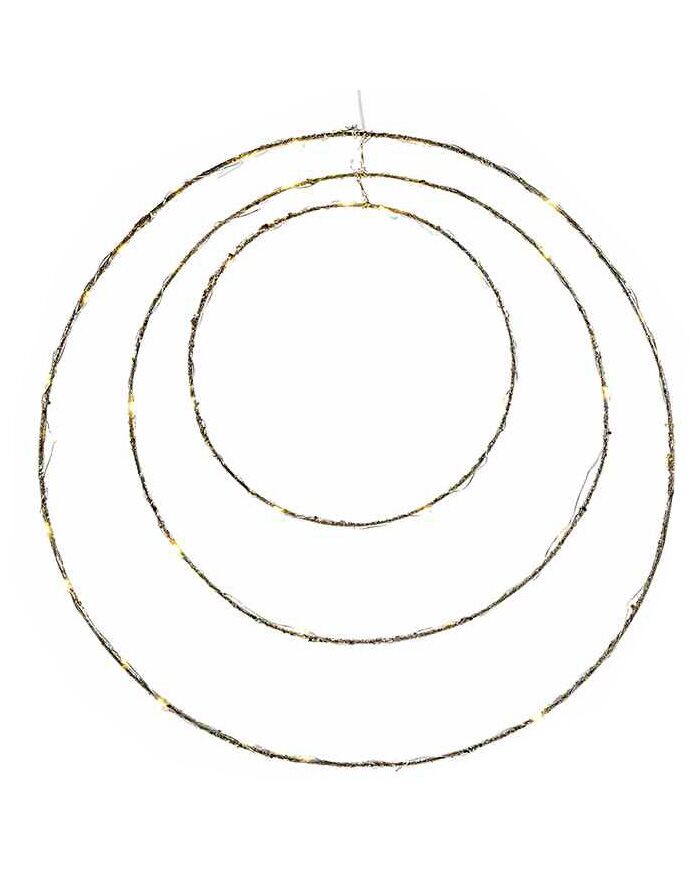 Dai un tocco fatato al tuo allestimento natalizio con questo delizioso cerchio in metallo dorato con glitter che si illumina con luci a led. La tua casa avrà un tocco di charm inconfondibile! Fai risplendere di luce natalizia la stanza e vivi la magia del Natale in tutta la sua atmosfera suggestiva!