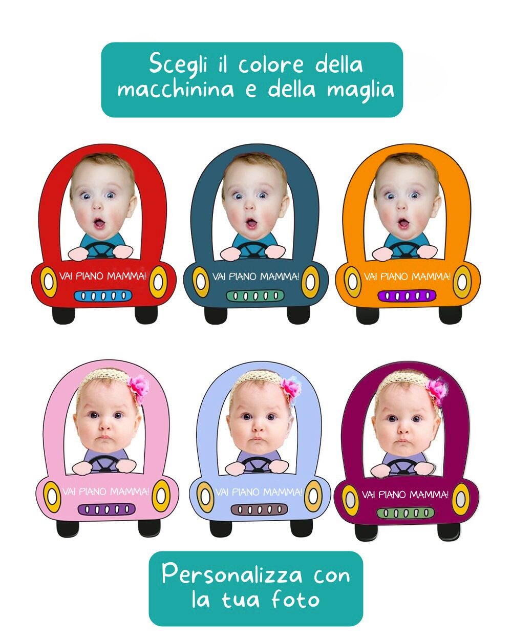 Personalizzazione: Foto del bambino + scelta colore macchinina e colore maglia, dal configuratore online