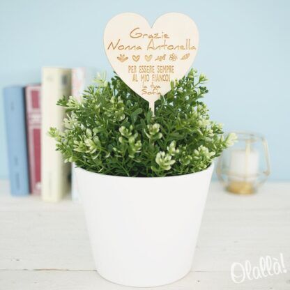 Splendido segna piante decorativo in legno, personalizzabile con una frase a scelta e una dedica speciale. A forma di cuore, è una dolcissima idea regalo per la tua nonna speciale, in occasione della Festa dei Nonni o per il suo compleanno.