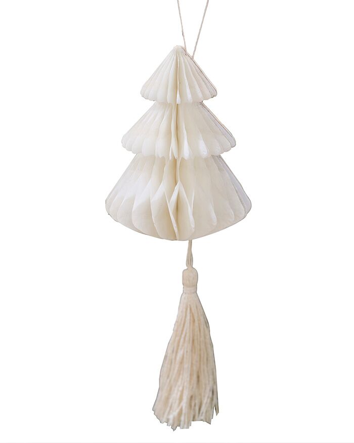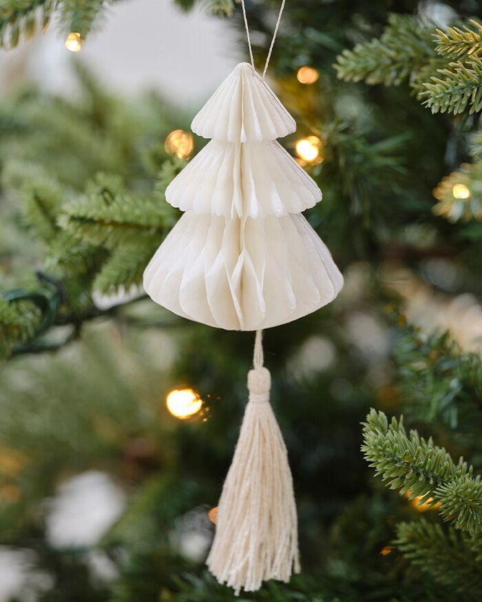 Stilosissime decorazioni in carta a nido d’ape a forma di alberello con nappe in macramè, perfette per essere appese all’albero di Natale insieme alle altre palline. L’albero avrà un’aura ancora più festosa e sprizzerà magia natalizia da ogni ramo!