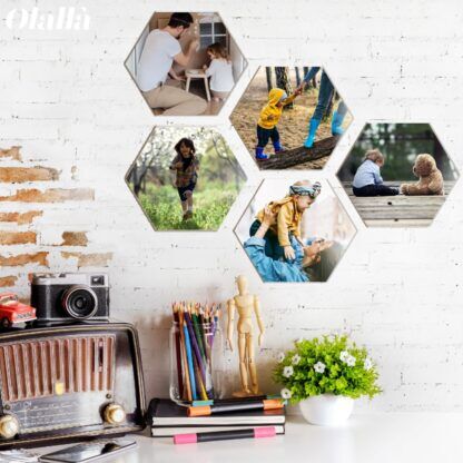Stampa la tua foto su un esagono in legno personalizzato! Crea le tue composizioni e arreda le tue pareti con stile. Si applica con il biadesivo di cui è dotato.