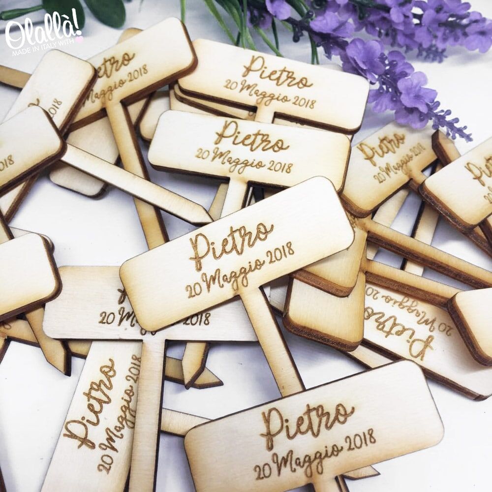 Etichetta da Pianta in Legno per Bomboniera Botanica