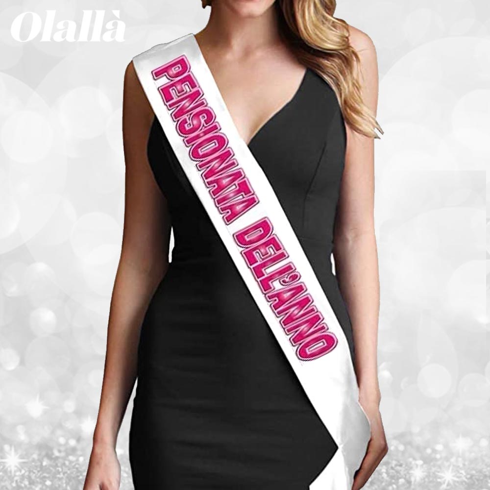 Fascia da premiazione con scritta “Pensionata dell’anno” per rendere davvero speciale la vostra festeggiata alla sua festa di pensionamento. Firmata sul retro dagli invitati, diventerà uno splendido ricordo per la pensionata, da conservare per sempre!