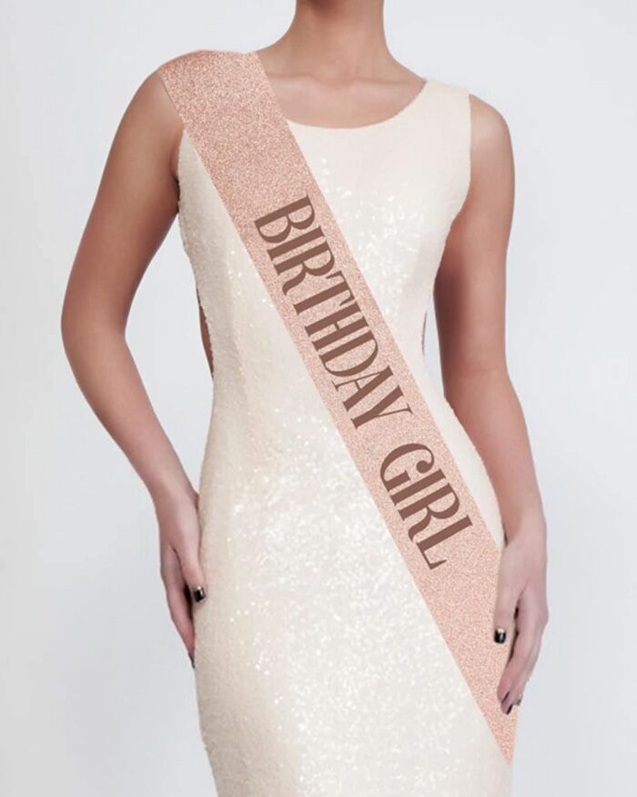 La fascia presenta la scritta rose gold “Birthday Girl” (festeggiata)