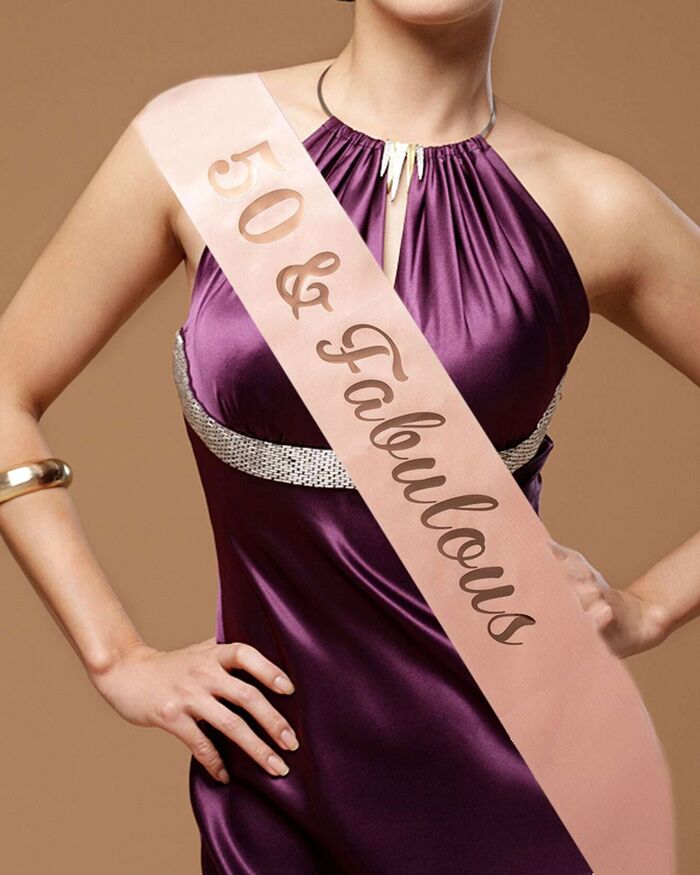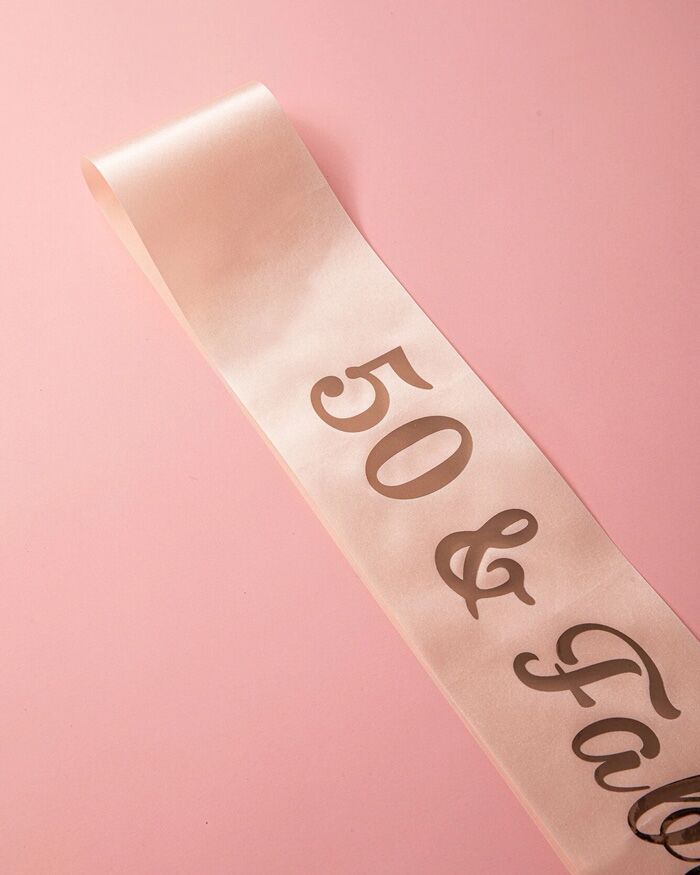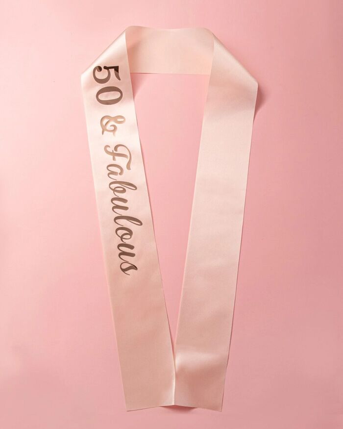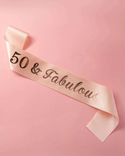 Una splendida fascia rosa con scritta “50 & Fabulous” per celebrare un traguardo importante ed essere la protagonista di una festa davvero favolosa!