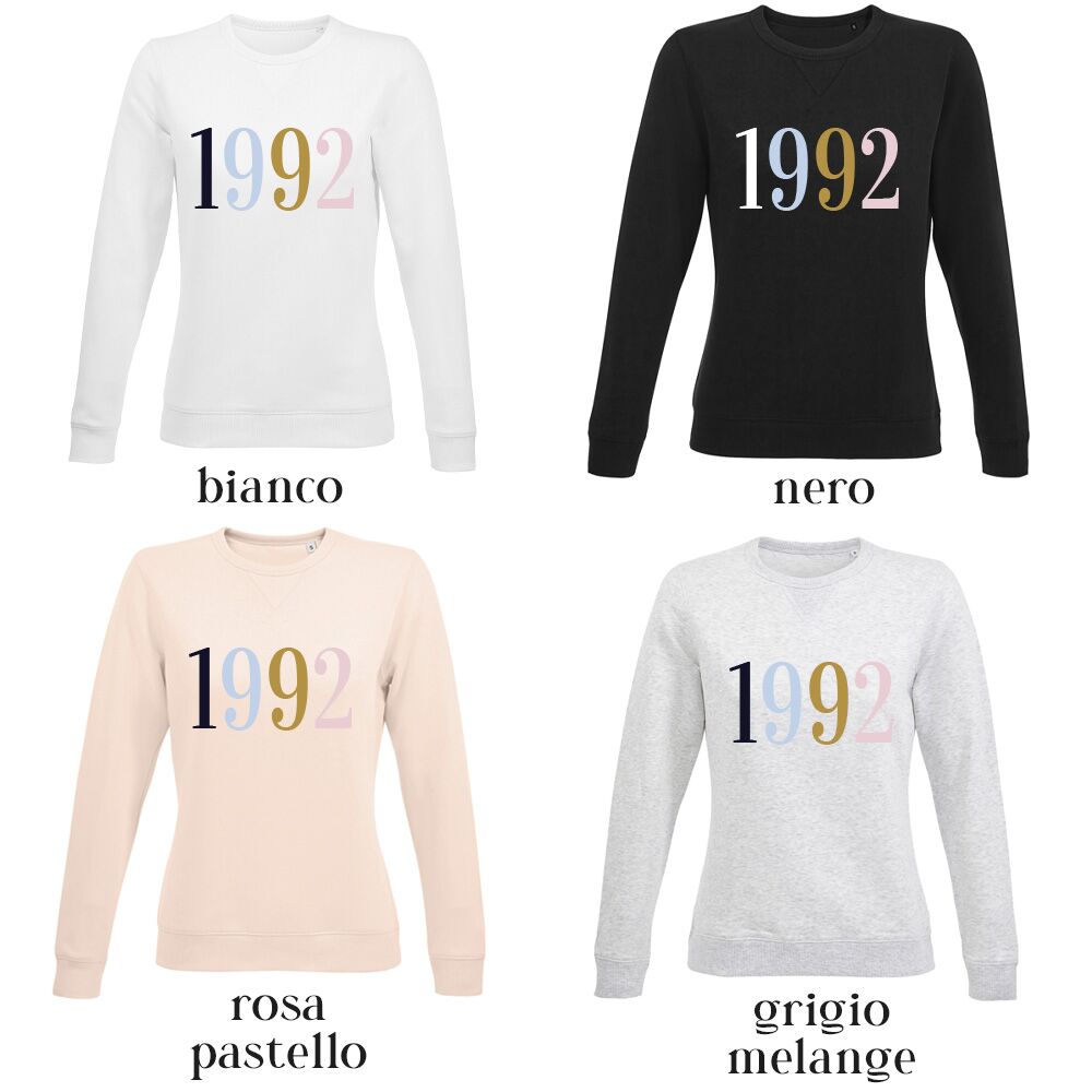 Felpa Donna Personalizzata con Anno di Nascita Colorato Elegante Idea Regalo Compleanno