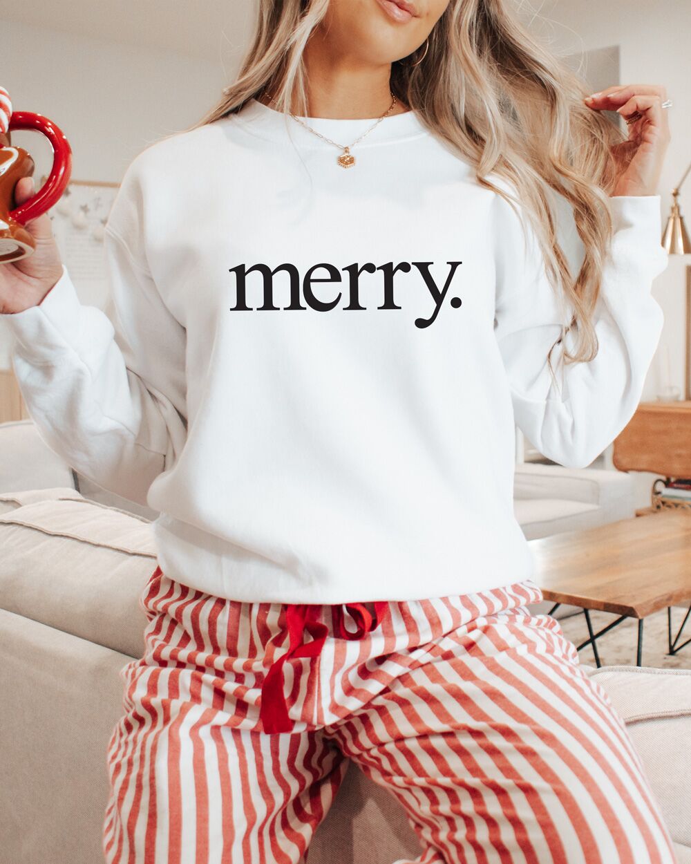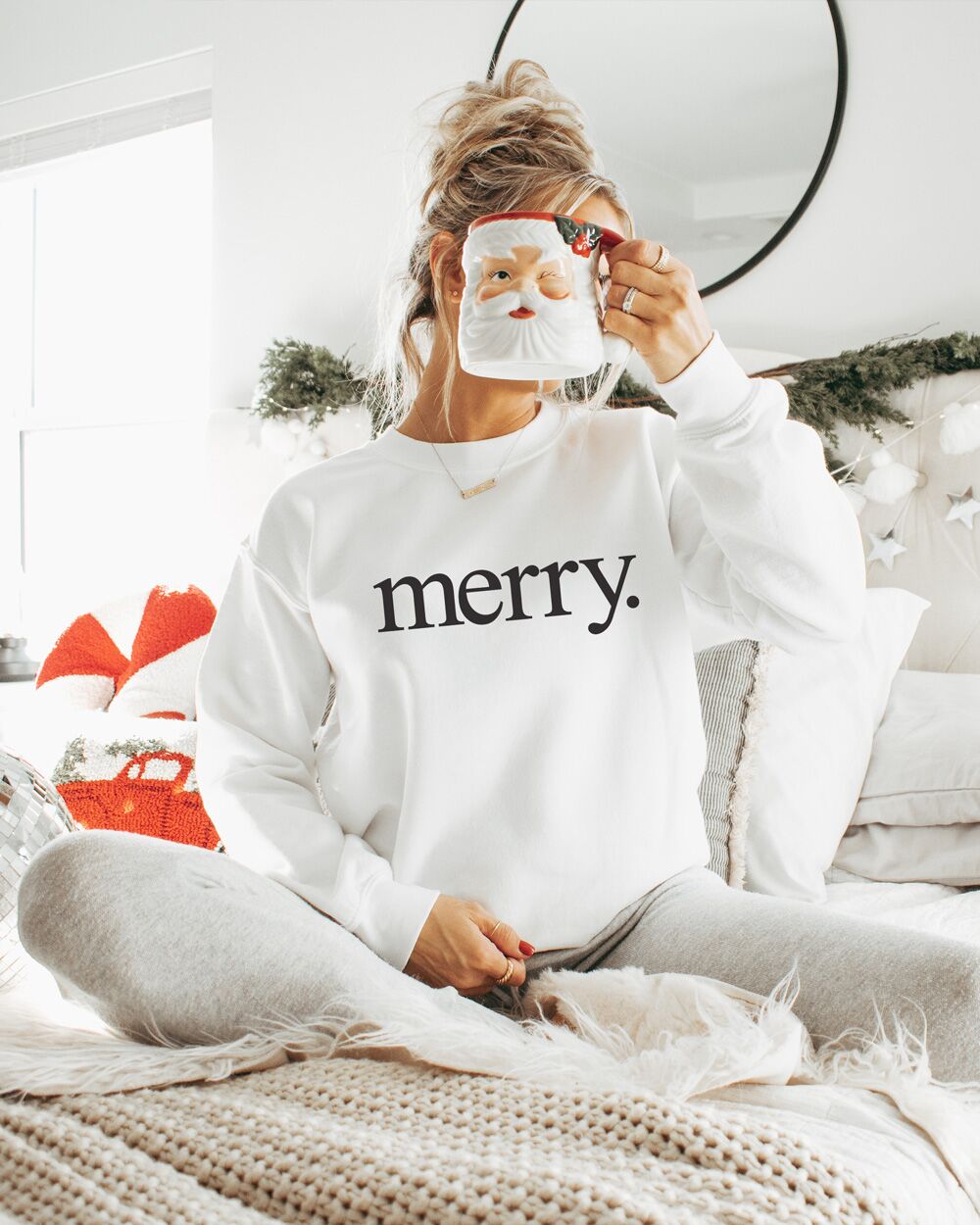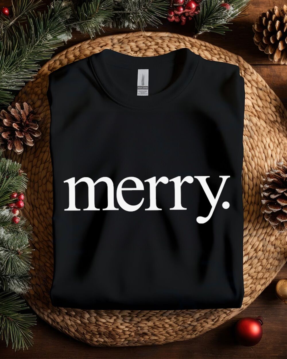 Il fulcro del design di questa felpa è la grafica minimalista ma espressiva: la parola “Merry.” stampata in modo prominente. La scelta di terminare la frase con un punto fermo trasmette un senso di ironia e sarcasmo, dando un tocco giocoso e contemporaneo alla tradizionale espressione natalizia. Questa caratteristica la rende perfetta per chi ama il Natale ma preferisce esprimere il proprio spirito festivo in modo più sottile e umoristico.