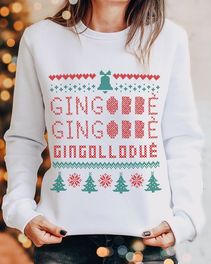 Una simpatica felpa natalizia da donna con una scritta parodistica di “Jingle Bells” stampata. Ideale per lei che ama l’atmosfera natalizia e conosce tutte le sue canzoni. Non vedrà l’ora di trasformarsi in una perfetta direttrice d’orchestra e far intonare anche a chi non sa l’inglese “Gingobbè…Gingobbè…”