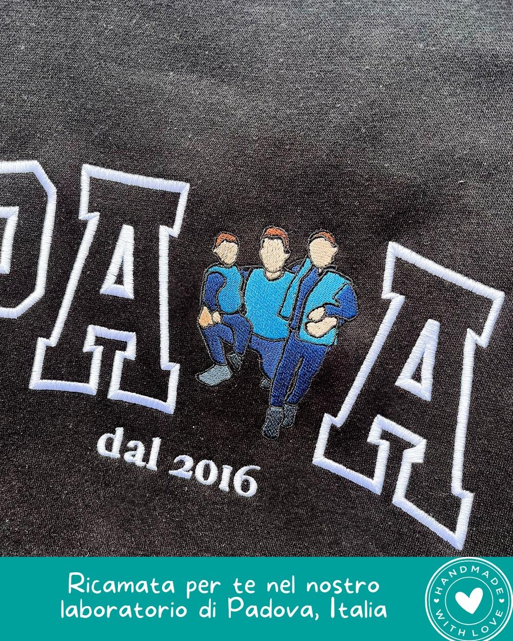 - Personalizzazione unica e di alta qualità – Ogni ritratto in stile Line Art è disegnato a mano, a partire dalla foto che invierai, e poi ricamato con precisione sulla felpa. L’artigianalità del nostro lavoro garantisce un risultato finale straordinario, che trasforma una semplice felpa in un’opera d’arte personalizzata, capace di esprimere tutto l’amore che un figlio prova per il proprio papà. La scritta “Papà” aggiunge un tocco di eleganza e significato.