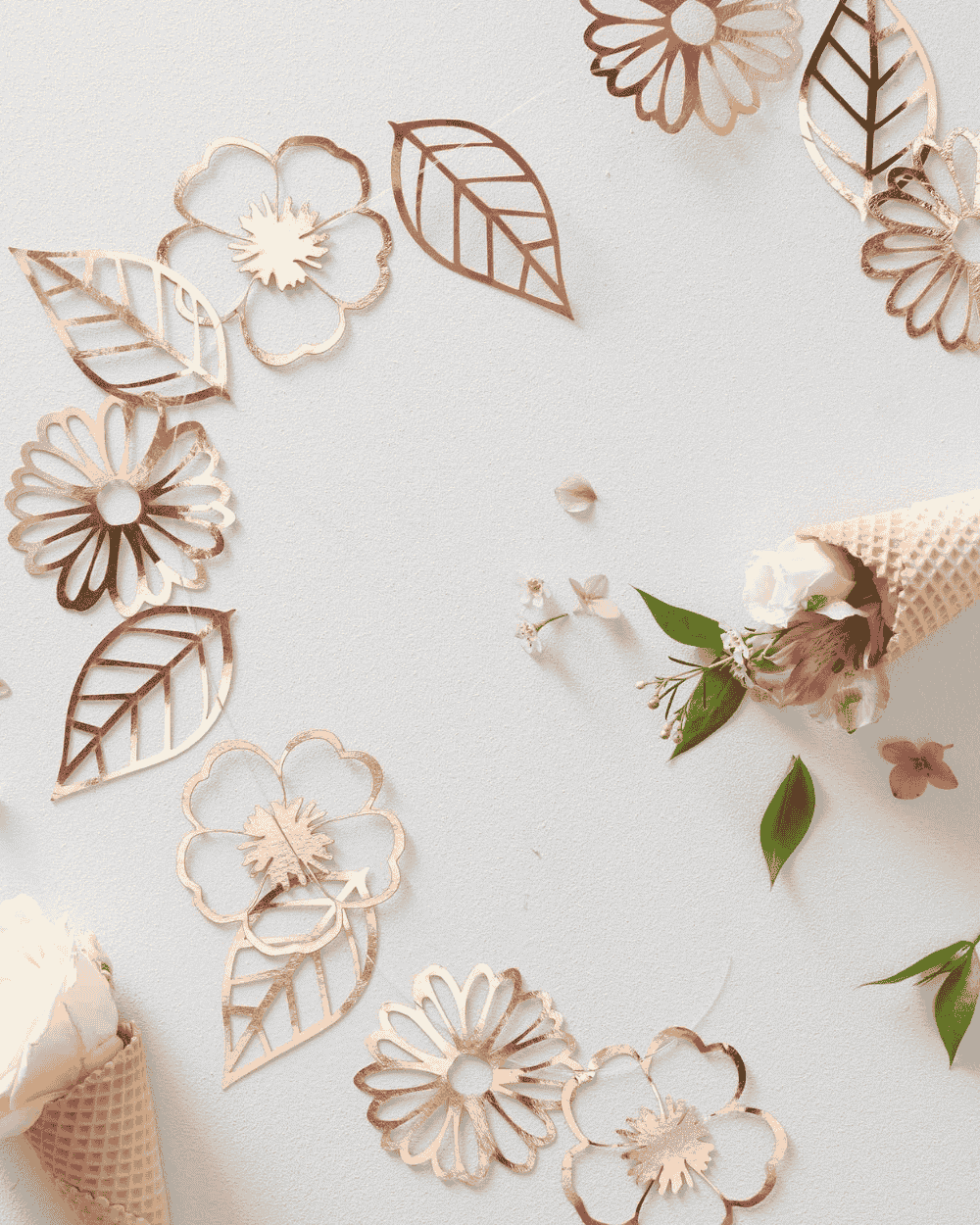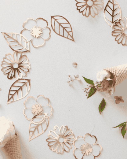 Festone Ghirlanda di Fiori in Lamina Oro Rosa – Decorazione Elegante per Ogni Occasione