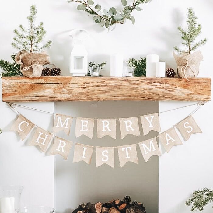 Festone Ghirlanda Natalizia con Bandierine in Juta “Merry Christmas”