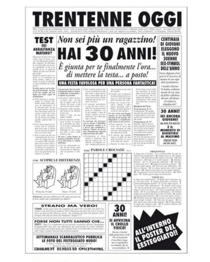 Se il traguardo dei trent’anni merita un regalo che spicchi per originalità e personalizzazione, il nostro Giornale di Auguri per i 30 anni è la scelta vincente. Non lasciarti sfuggire l’opportunità di fare gli auguri in modo eccezionale al tuo amico trentenne!