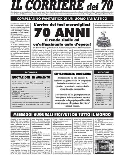 Per celebrare il settantesimo compleanno di una persona speciale, scegli ‘Il Corriere dei 70′, un biglietto di auguri unico nel suo genere, carico di originalità e humor.