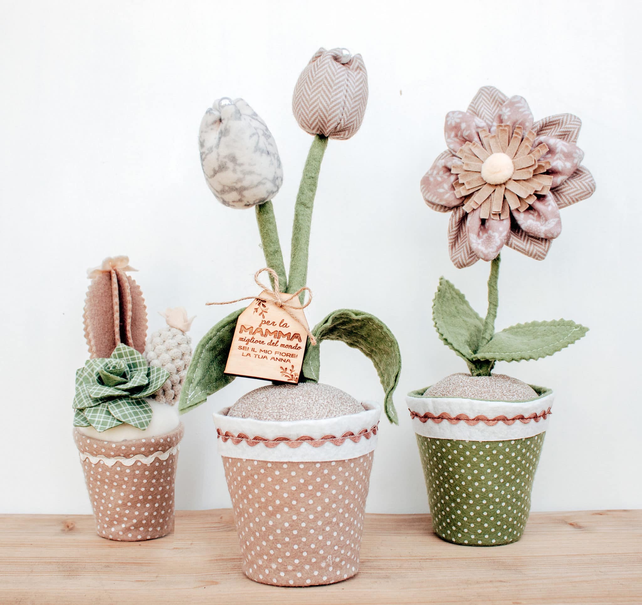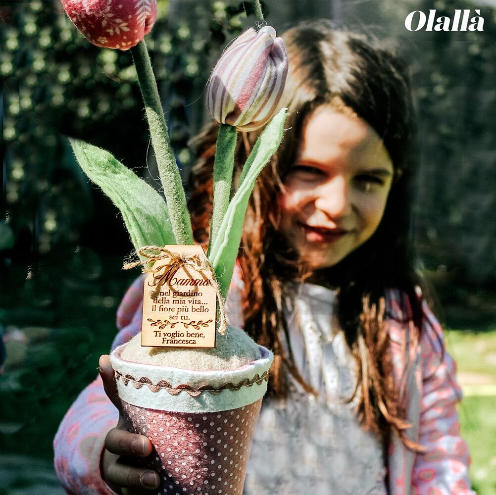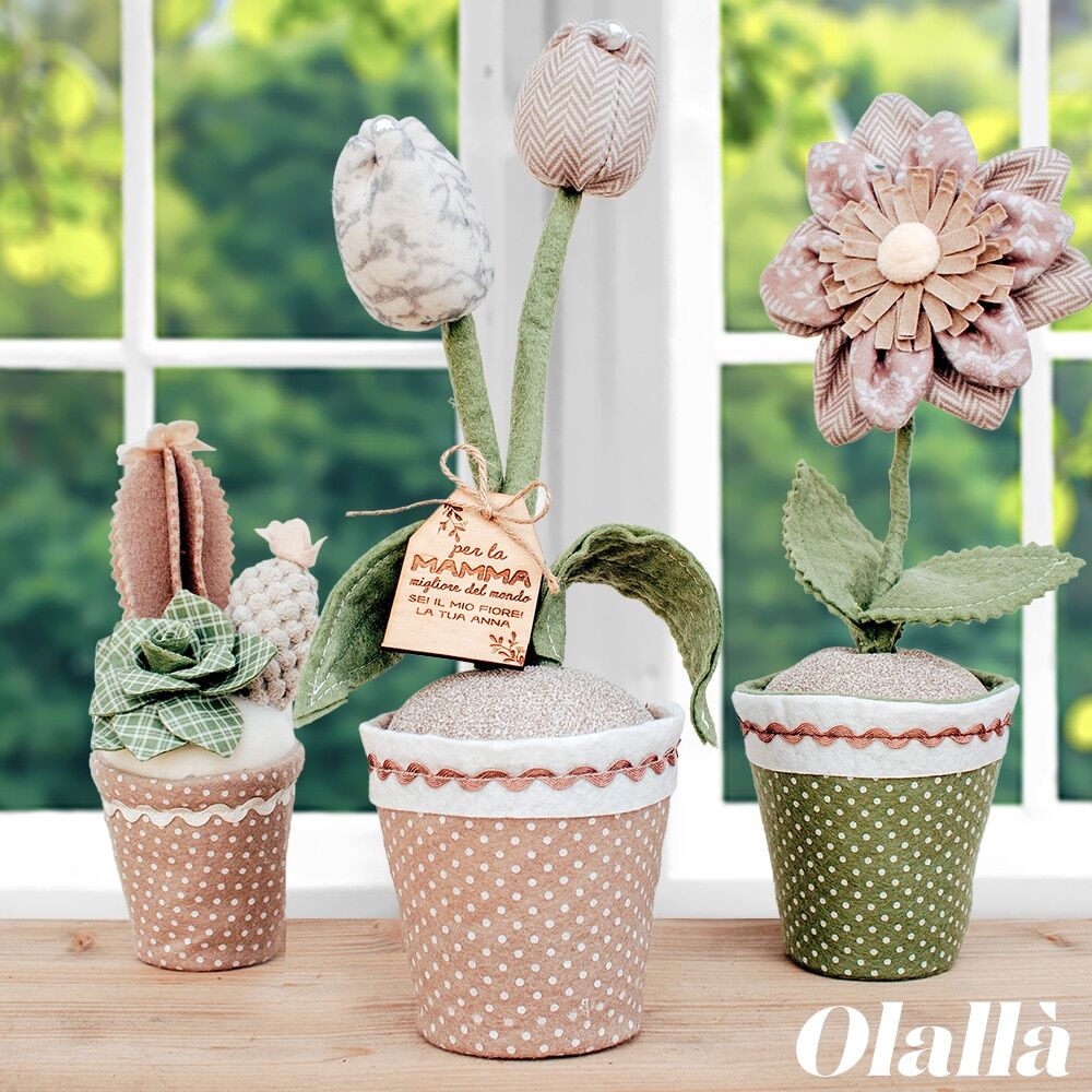 Il tulipano in vaso è realizzato in tessuto ed è perfetto per decorare una mensola, un mobile o una finestra.