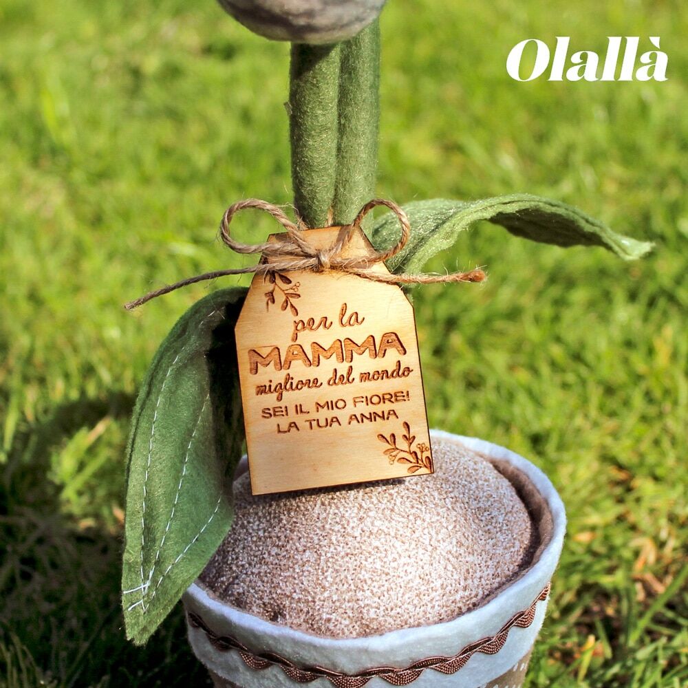La targhetta in legno incisa con le tue parole speciali è legata con un nastrino di canapa e misura 4×6 cm.