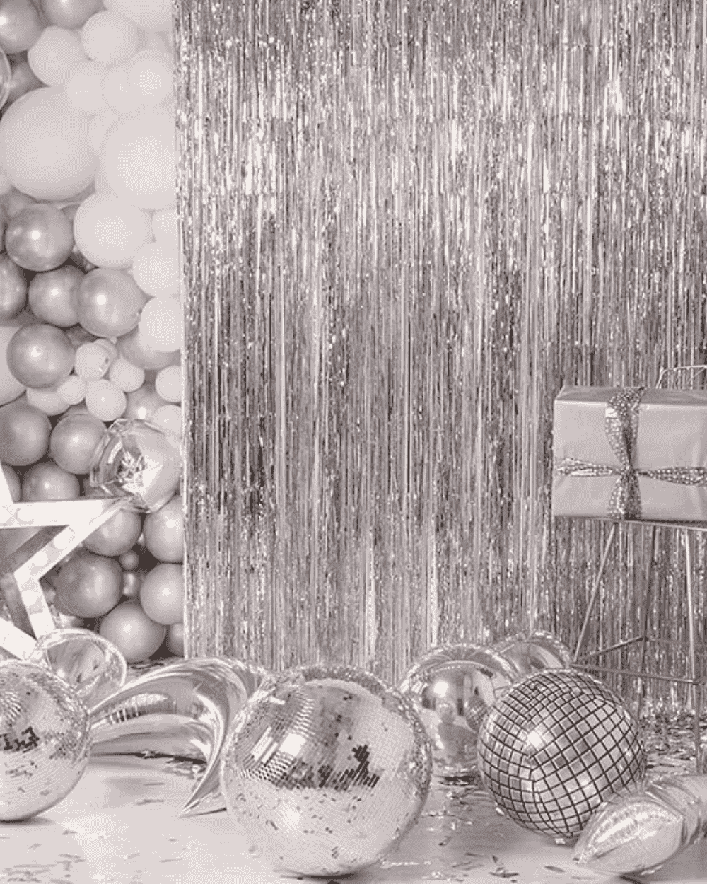 Crea un’atmosfera scintillante e glamour per il tuo evento con questo fondale argentato a strisce con frange! Ideale per feste di Natale, compleanni, anniversari e serate speciali, questo fondale trasforma qualsiasi ambiente in una location perfetta per foto memorabili e momenti di festa.