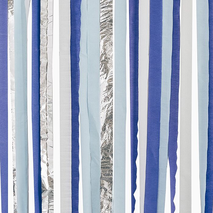 Rendi speciale la tua festa aggiungendo un forte accento colorato blu ed argento grazie a queste bellissime strisce di carta multicolore. Nella confezione trovi 4 rotoli da 10 metri di nastro di carta celeste chiaro, 2 rotoli da 10 metri di nastro di carta color crema, 4 rotoli da 10 metri blu navy, e 10 metri di nastro di carta argentata. Inoltre, trovate 1,5 metri di filo trasparente che vi consentirà di assemblare i nastri come preferite!