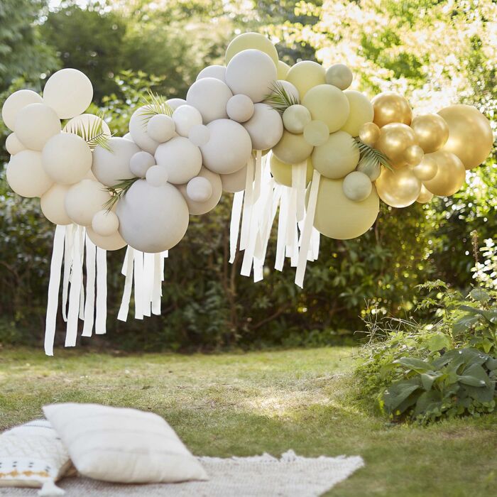 Il nostro arco per palloncini ha 75 palloncini che consistono in varie tonalità e misure, 5 ramoscelli di palma da 60 cm, 12 m di stelle filanti. Per unirli, vengono fornito 4m di nastro per palloncini e 60 stickers.