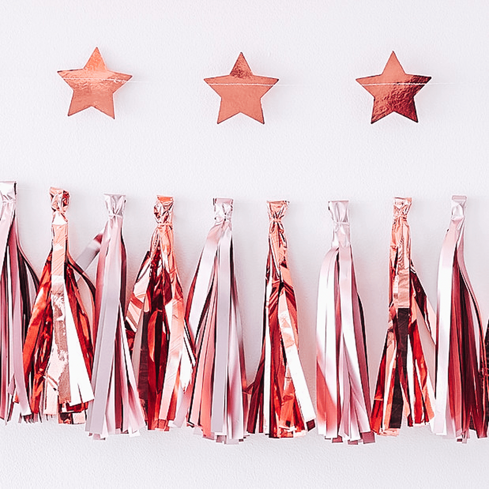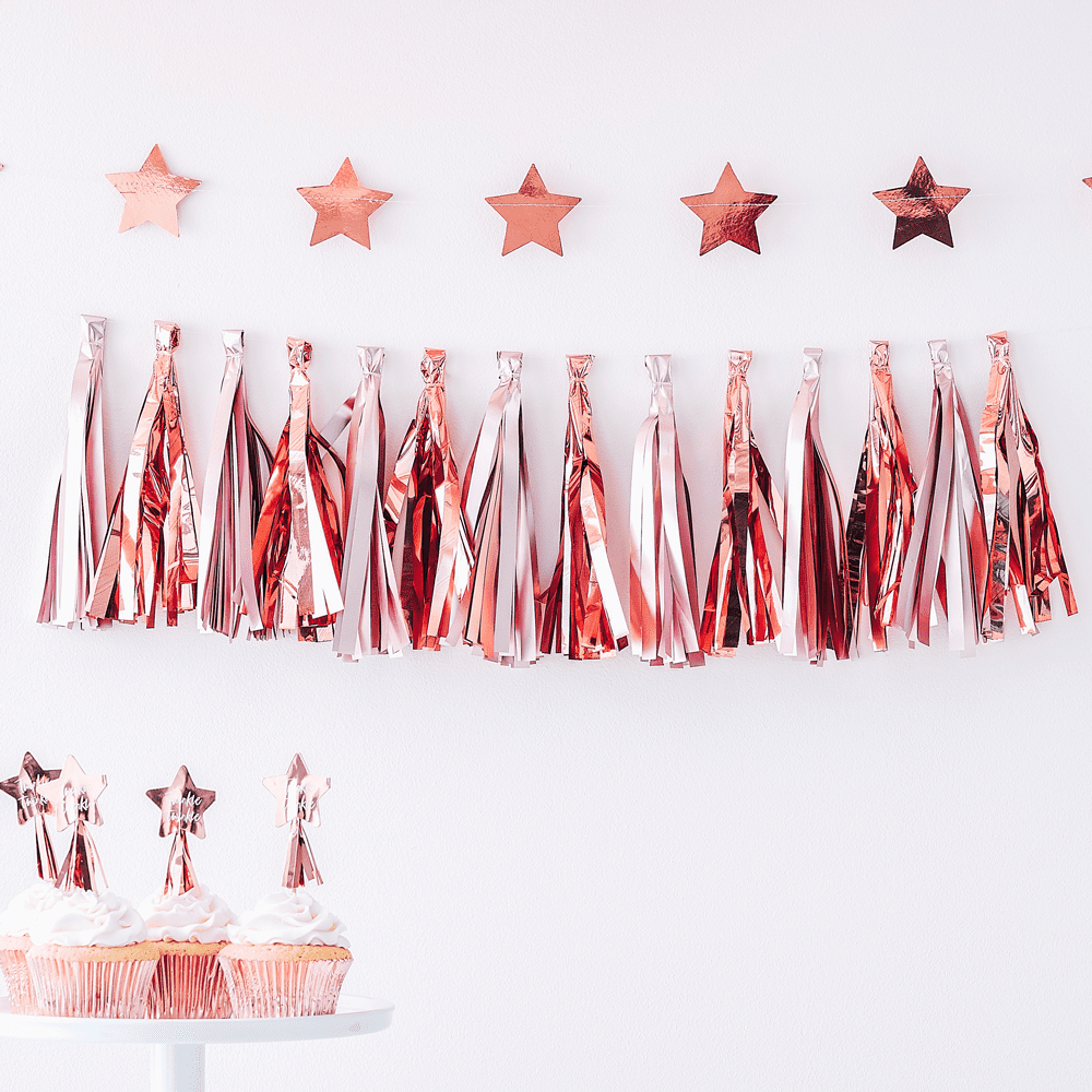 Bellissimo Festone Ghirlanda con Nappine Rosa e Rose Gold. Questa decorazione è perfetta per donare una sferzata di energia ai vostri baby shower o feste di compleanno, in perfetto stile Girl Power! Lascia che lo scintillio di queste nappine illuminino la tua festa, creando un perfetto sfondo per il momento foto, o semplicemente aggiungendo un tocco rosa alla tua atmosfera!