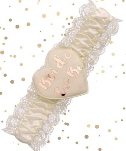 Con questa giarrettiera dorata con scritta in rose gold “Bride to Be”, la festa di addio al nubilato della tua amica non sarà più la stessa. Rendi questo ultimo giorno prima del matrimonio ancor più divertente con questo accessorio, perfetto per un tocco di stile e di divertimento in più per tutte le invitate.