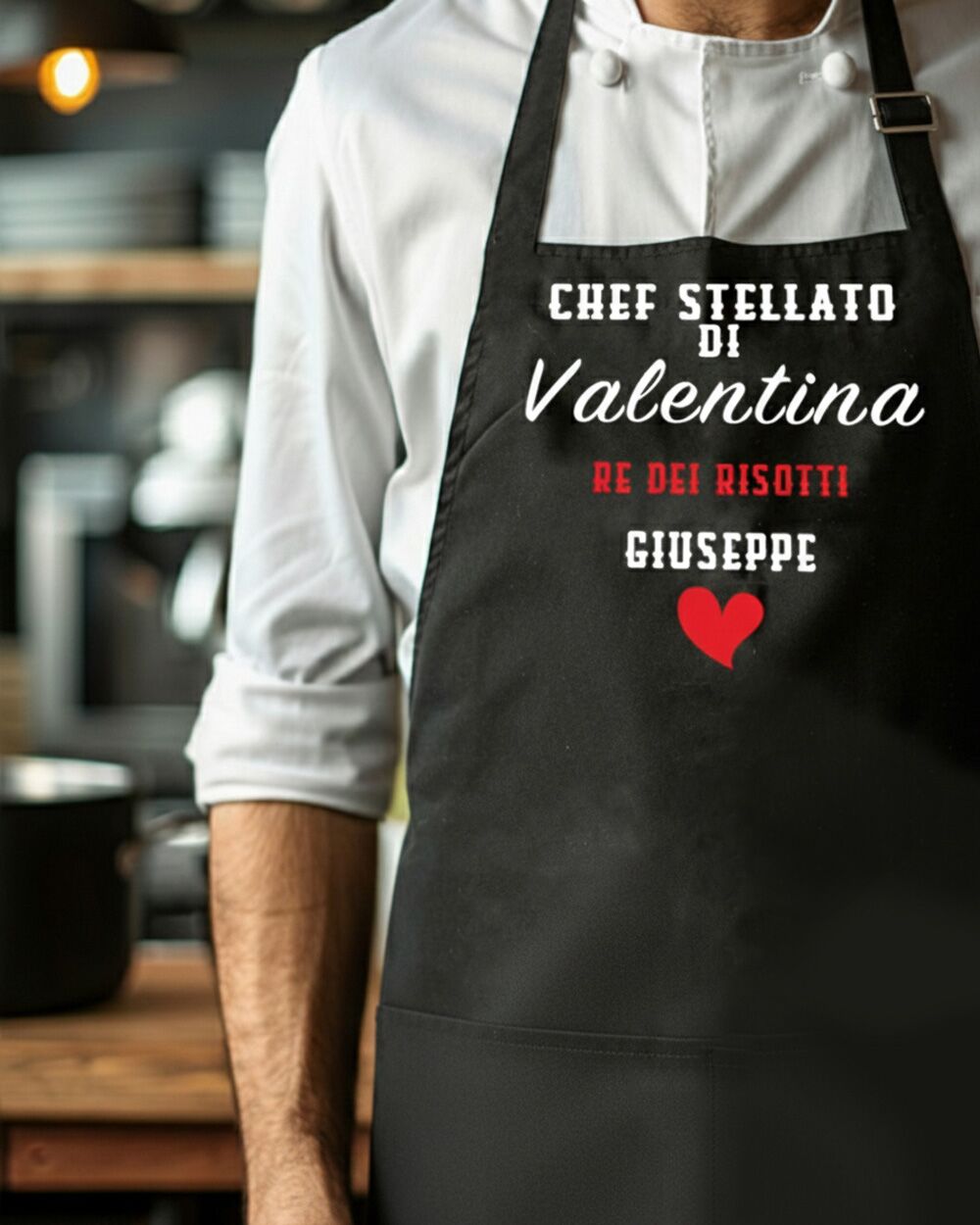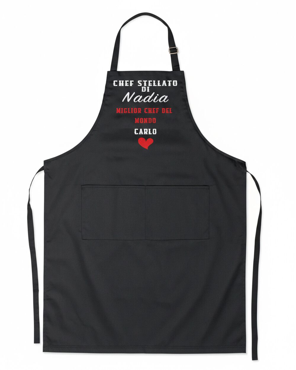 Sorprendi la persona che ami con un regalo originale e unico! Il nostro grembiule da cucina personalizzato per lui è il pensiero perfetto per celebrare San Valentino, un anniversario o qualsiasi altra occasione speciale. Con il suo design pratico e la possibilità di personalizzarlo con i vostri nomi o una dedica speciale, questo grembiule è molto più di un semplice accessorio: è un simbolo del vostro amore e della vostra complicità in cucina.