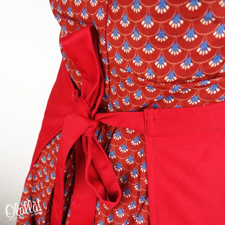 Taglia unica. Il grembiule, o parannanza arriva sopra le ginocchia.