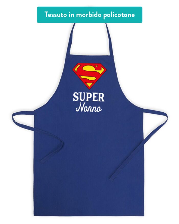 Simpaticissimo grembiule con logo di Superman e scritta “Super Nonno”. Fai un regalo speciale ed originale al tuo nonno con la passione per la cucina, pronto a risolvere ogni tipo di situazione, per la gioia di tutti i nipoti!