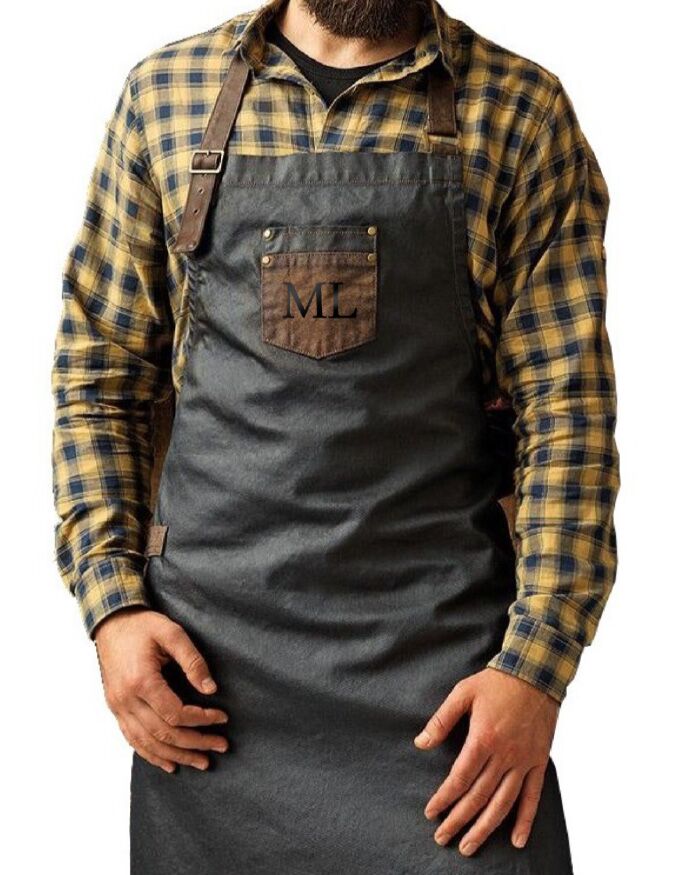 1 recensione per Grembiule Effetto Cerato con Pettorina in Pelle e Chiusura Regolabile Personalizzato con Iniziali – Idea Regalo Festa del Papà, per Amanti della Cucina e BBQ, del Giardinaggio e del Fai-Da-Te