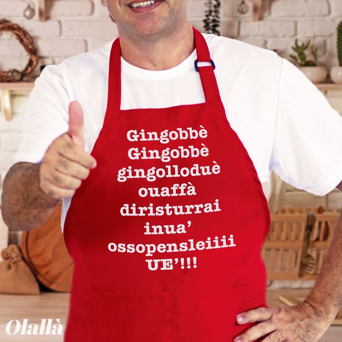 Divertiti al pranzo di Natale con questo simpaticissimo grembiule con la parodia di Jingle Bells, scritta come la cantiamo tutti noi italiani (anche se nessuno vuole ammetterlo!).