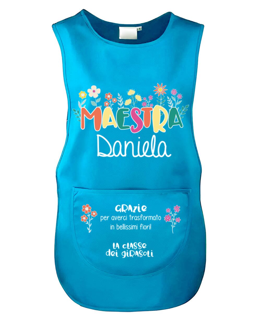 La fine dell’anno scolastico è un momento speciale per ringraziare chi ha dedicato amore e passione all’educazione dei nostri piccoli. Il nostro grembiule per maestra, personalizzabile con il nome e una dedica speciale, è decorato con eleganti fiori colorati, rendendolo il dono perfetto per qualsiasi insegnante dell’asilo o del nido.