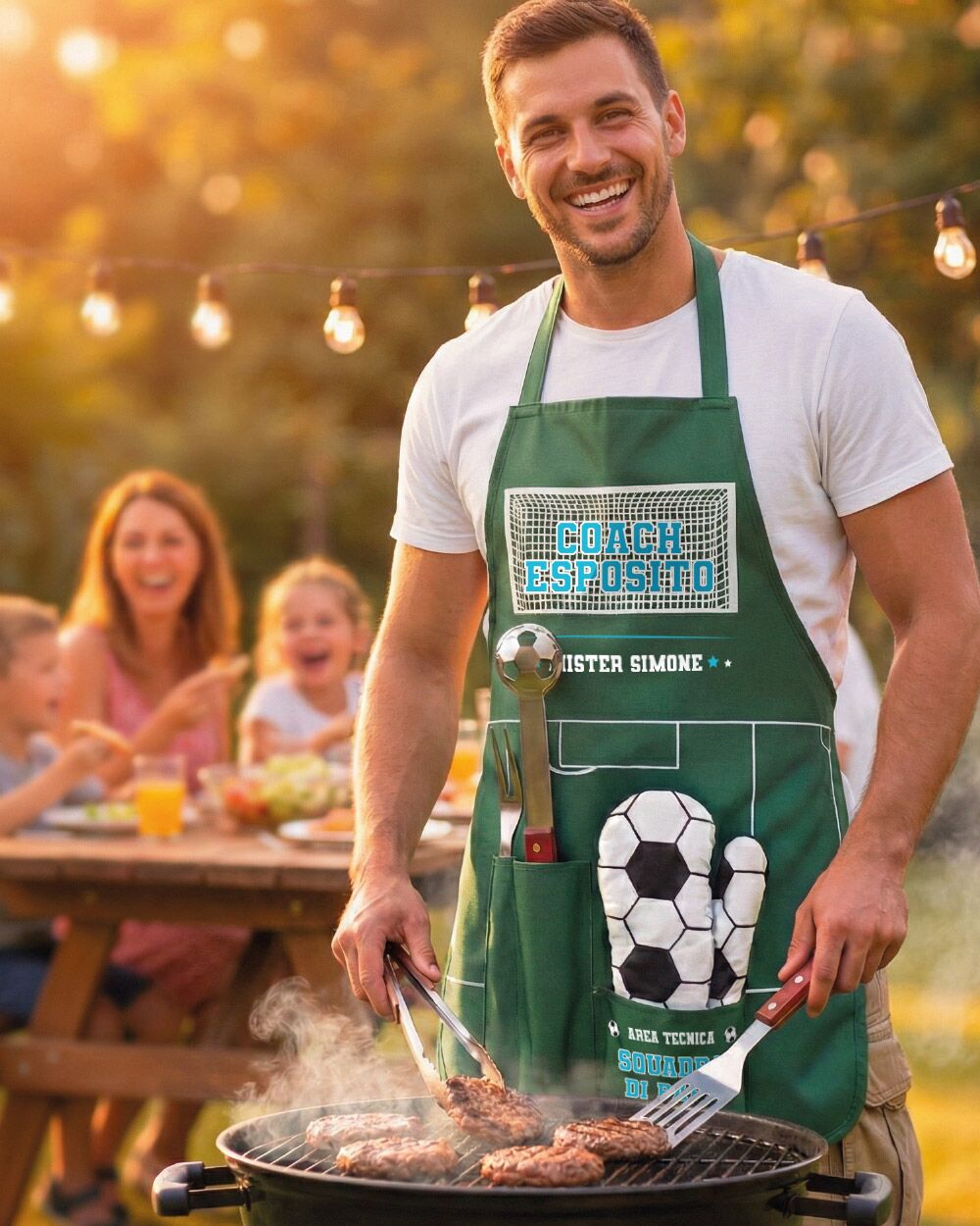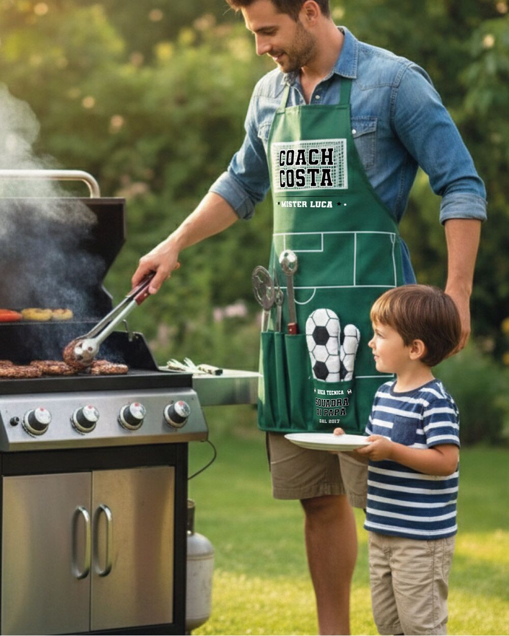 Trovare i regali festa del papà perfetti sembra un’impresa, ma questo kit scatenerà l’effetto “wow” che stai cercando. È il regalo per festa papà ideale per celebrare il 19 marzo, ma è altrettanto fenomenale da regalare in estate per il suo compleanno, per Natale, o alla fine del campionato per ringraziare di cuore l’allenatore di calcio dei tuoi ragazzi. Immagina le risate degli amici quando scarterà il pacco: non vedrà l’ora di indossarlo, accendere il fuoco e autoproclamarsi l’eroe della domenica!