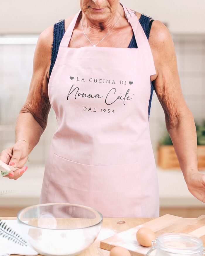 Sorprendi la nonna amante della cucina con questo splendido grembiule personalizzato, perfetto per cucinare tutte le ricette che ami tanto! Sarà una sorpresa unica e pensata per stupire la nonna in occasione della prossima Festa dei Nonni.