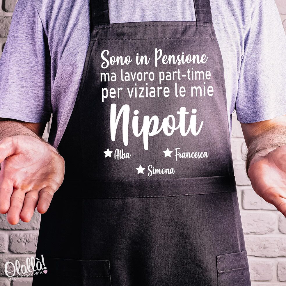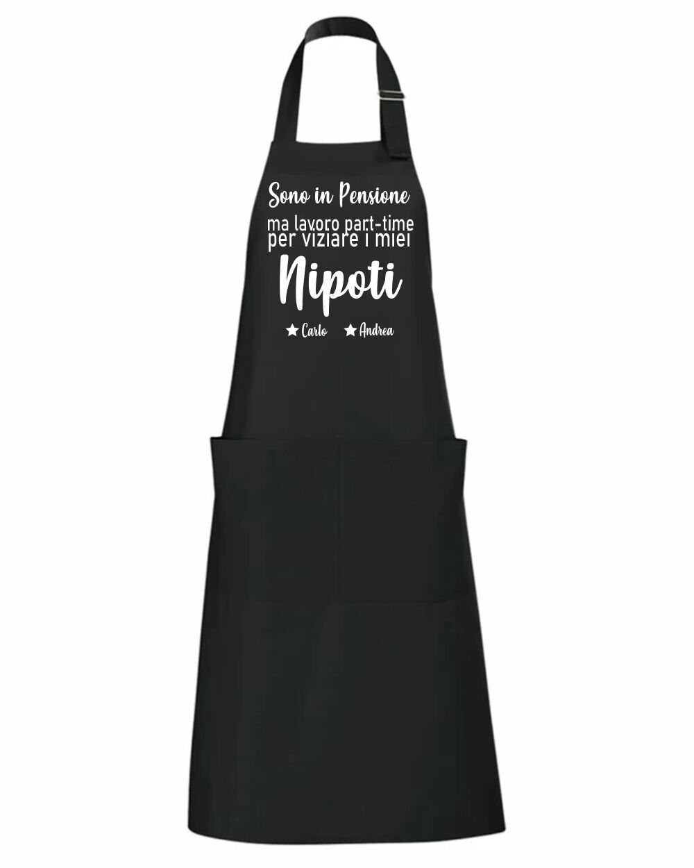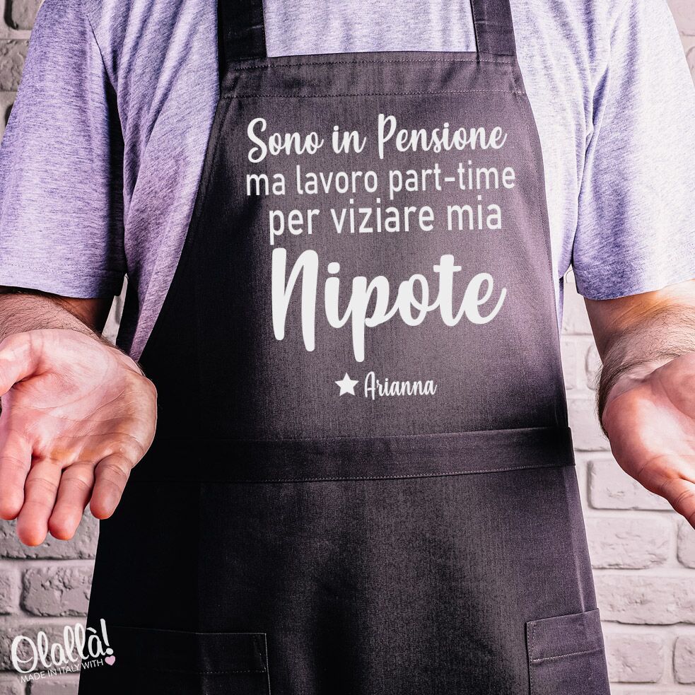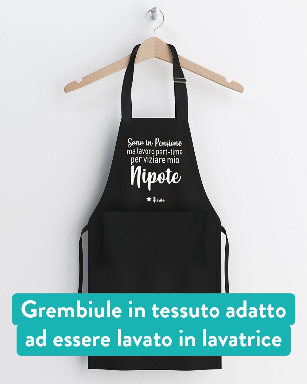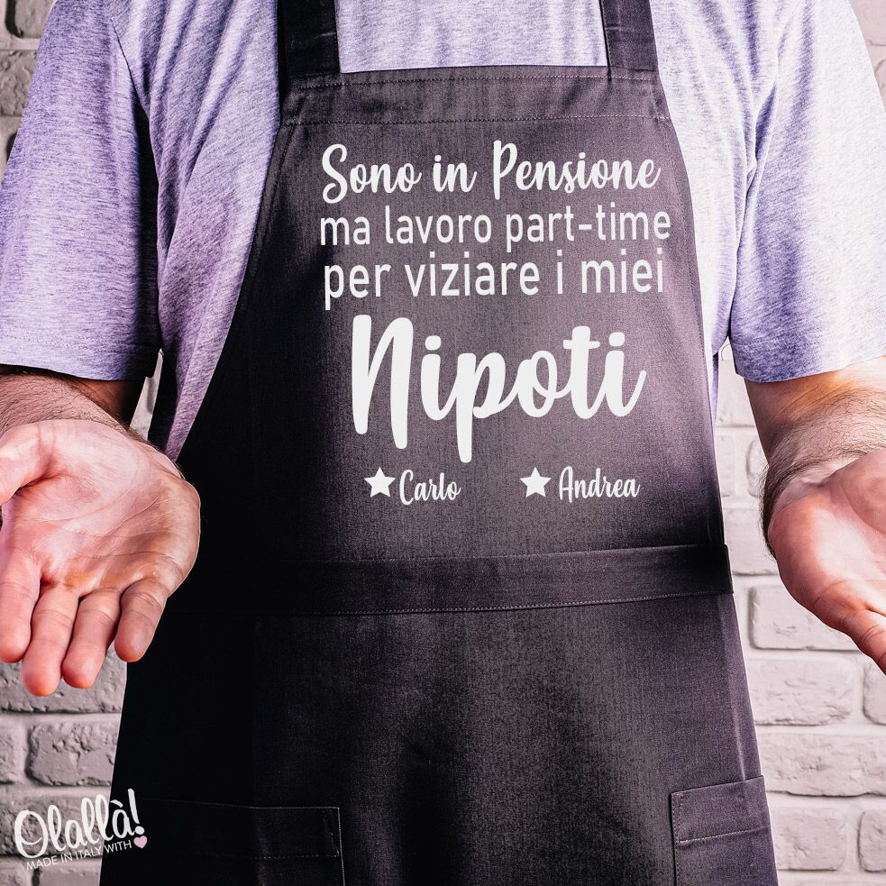 Grembiule Personalizzato “Sono in Pensione ma lavoro Part Time per viziare i mie nipoti” – Il Regalo Perfetto per i Nonni che amano cucinare