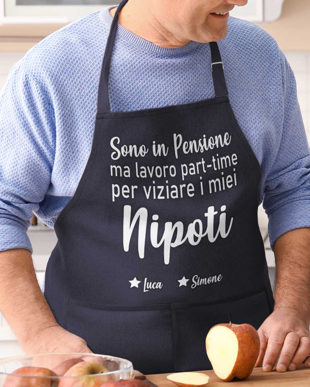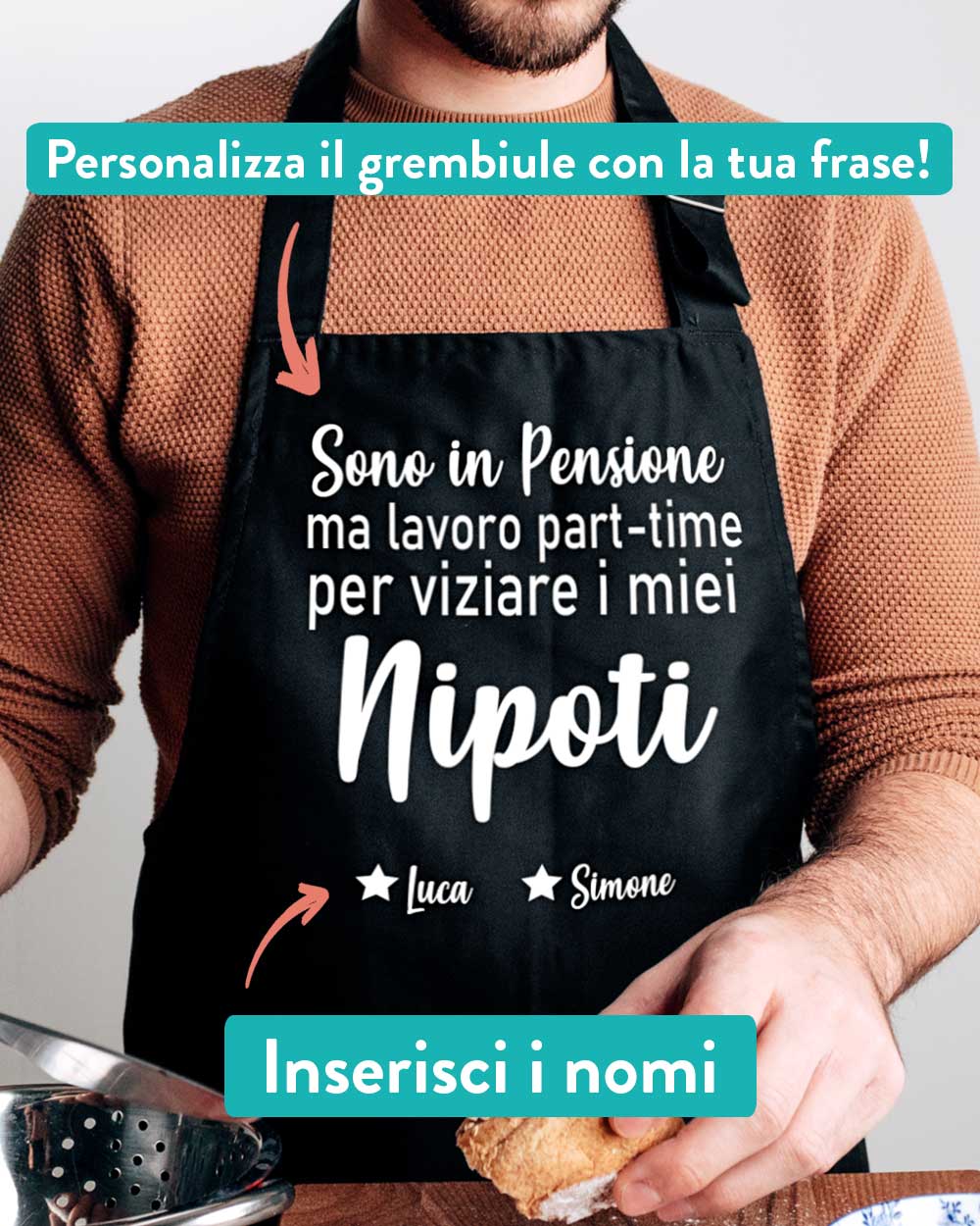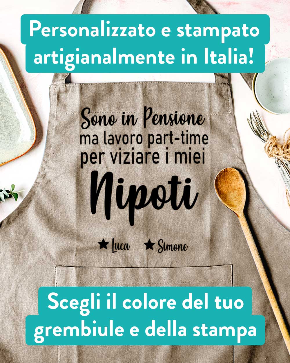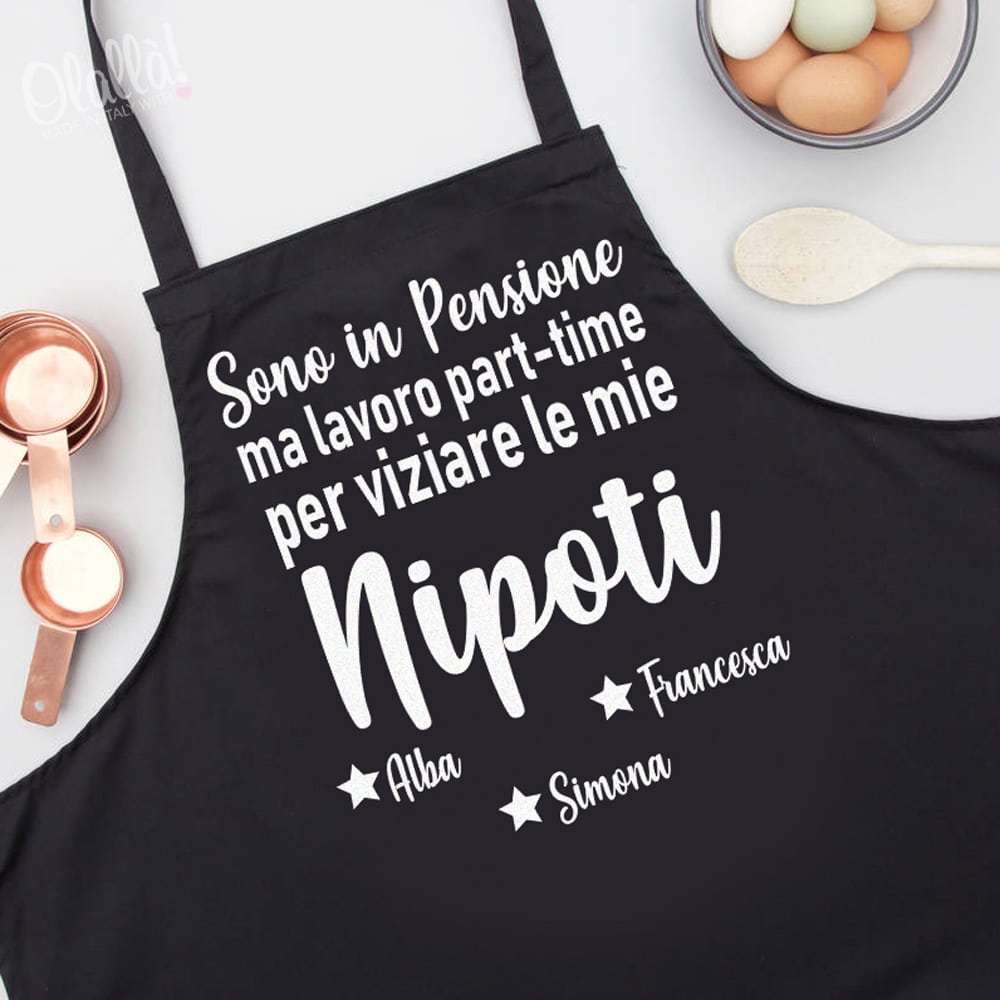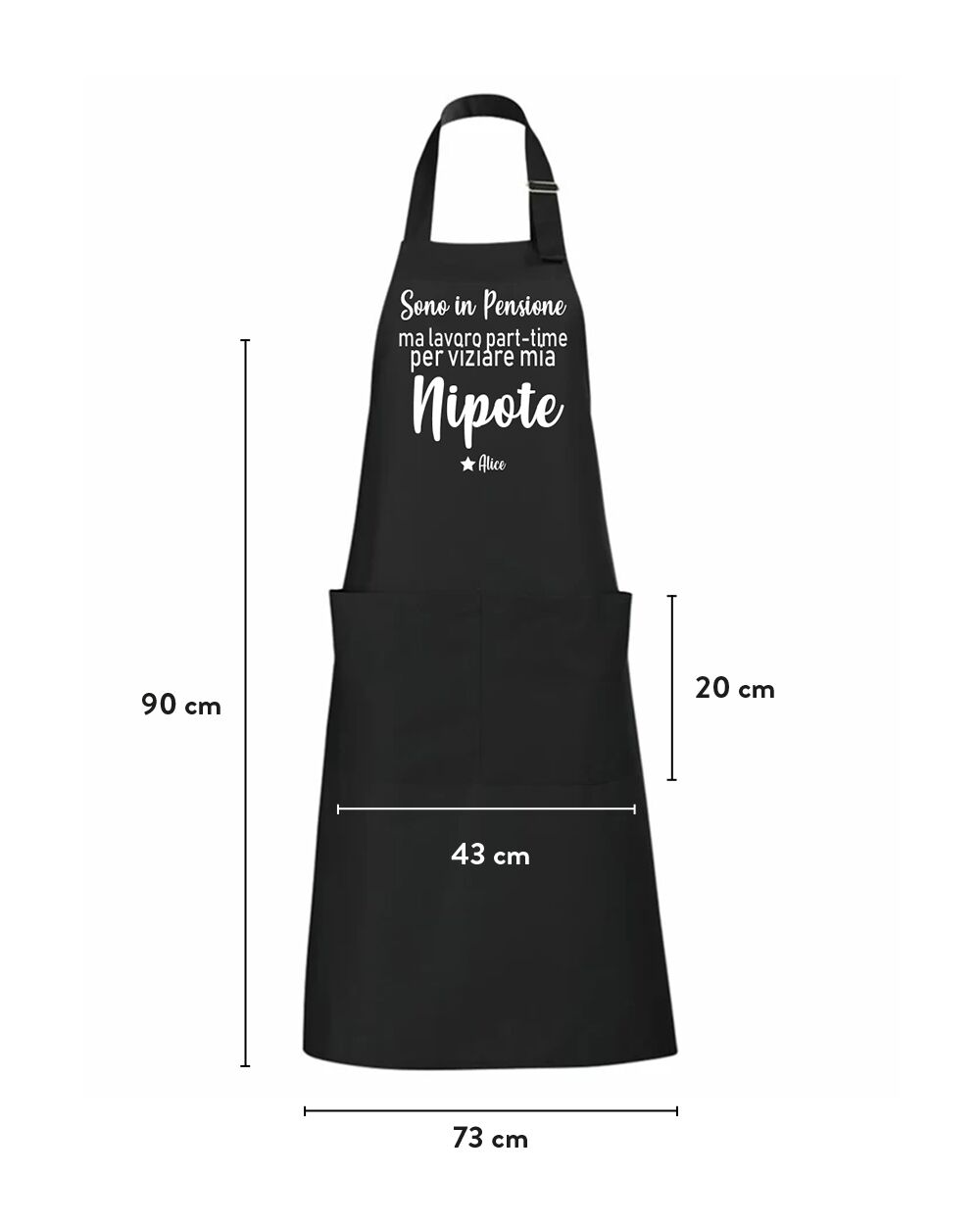 Grembiule Personalizzato “Sono in Pensione ma lavoro Part Time per viziare i mie nipoti” – Il Regalo Perfetto per i Nonni che amano cucinare