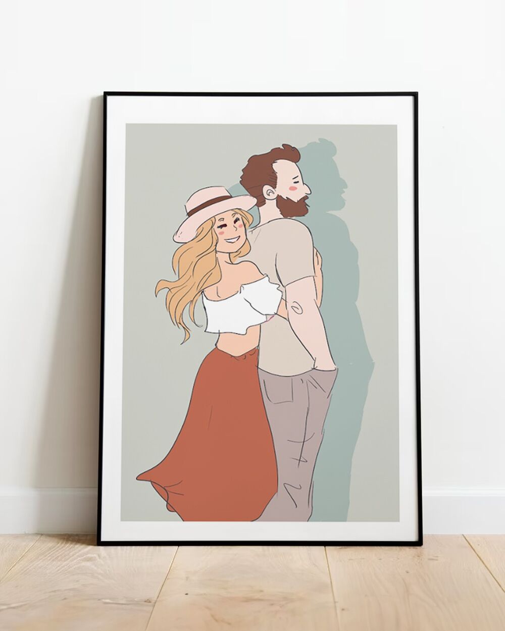 - Arte Digitale Personalizzata: Ogni illustrazione è unica, creata digitalmente a mano con cura e attenzione, garantendo che il regalo per il tuo partner sia tanto speciale quanto la vostra relazione.
