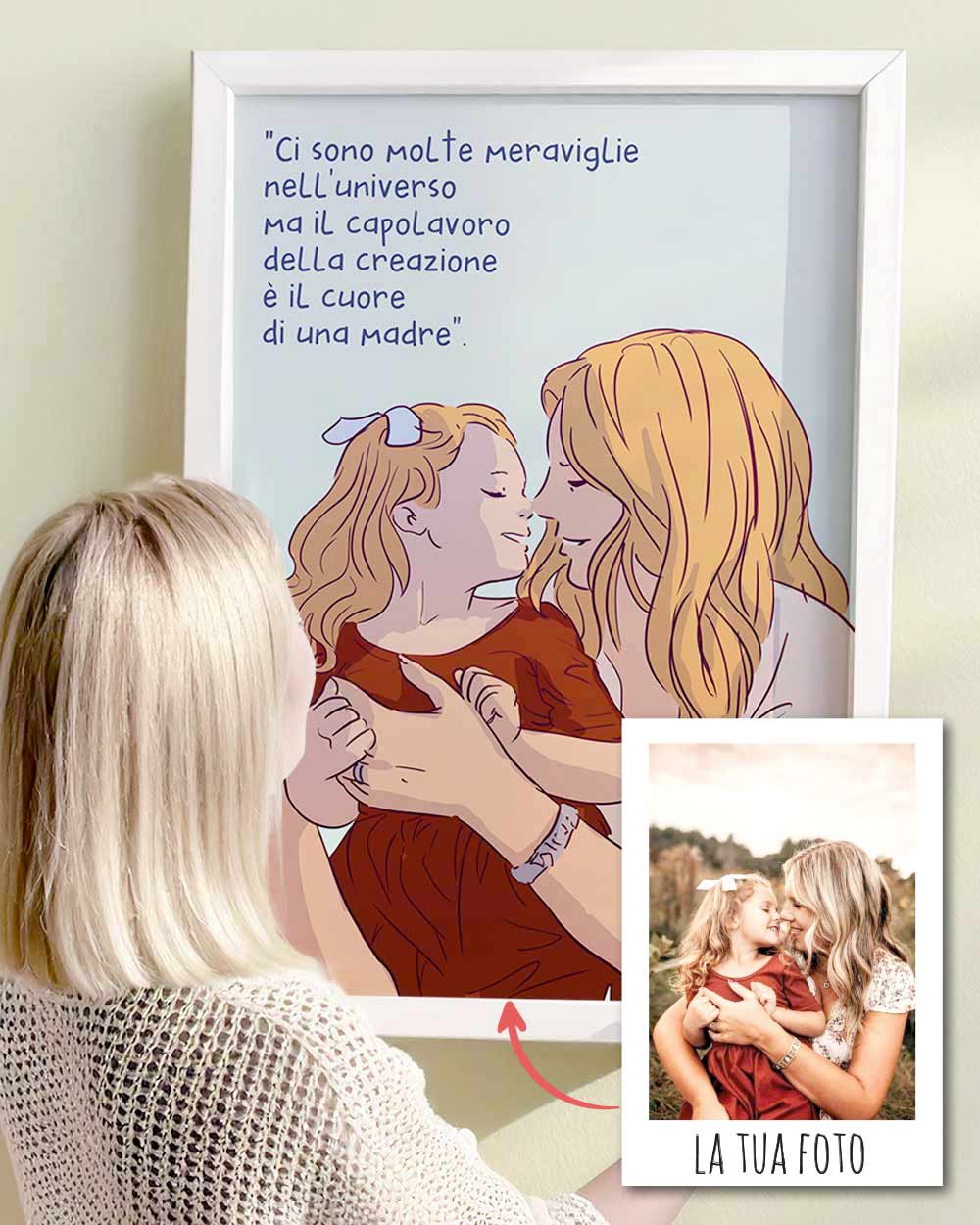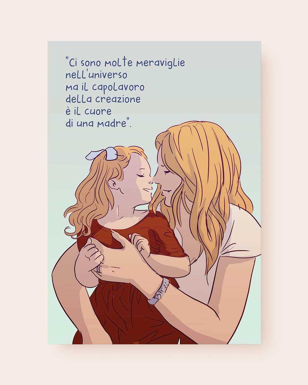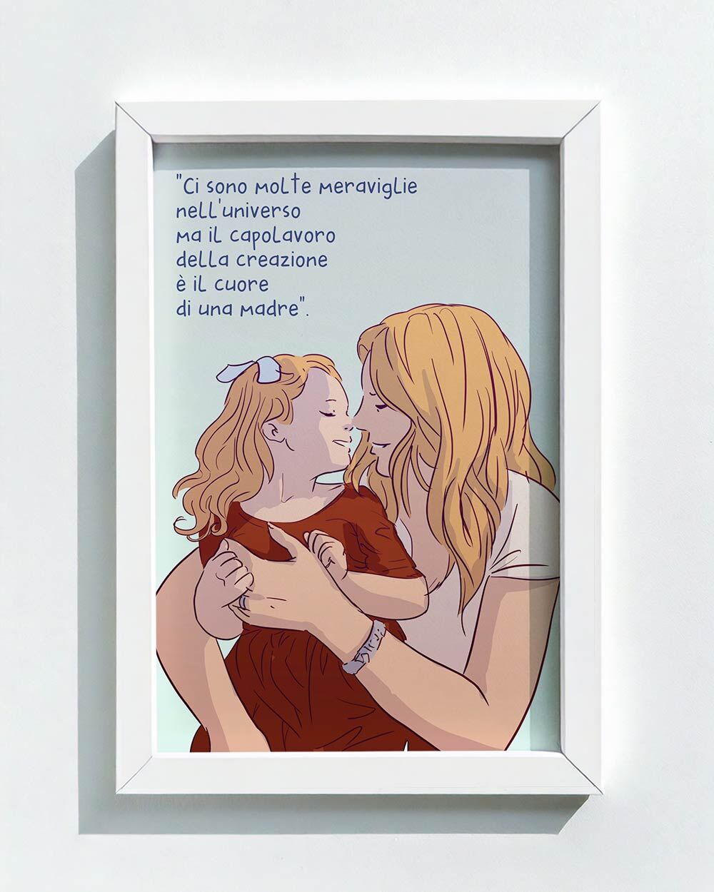 Questa illustrazione digitale è perfetta come idea regalo per la Festa della Mamma, ma anche per il suo compleanno o qualsiasi altro momento in cui vuoi dirle “ti voglio bene” in modo originale e profondo.