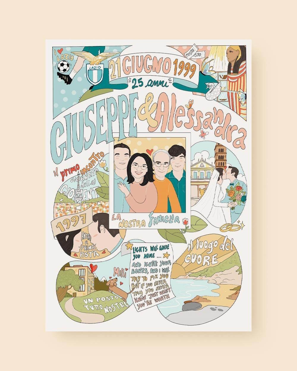 - Meravigliosa illustrazione digitale personalizzata che ritrae tanti aspetti che rendono una storia d’amore unica e piena di significato.