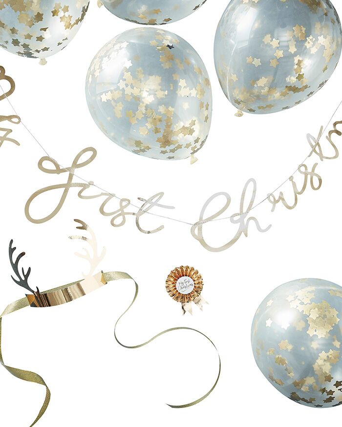 Ogni confezione include 1 coccarda, 1 fascia per la testa a forma di corna di renna, 5 palloncini, 1 nastro, 1 festone.
