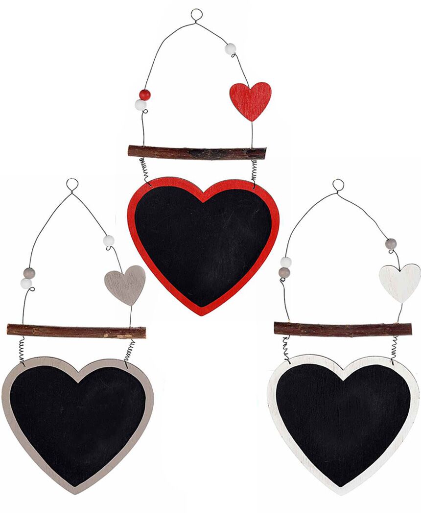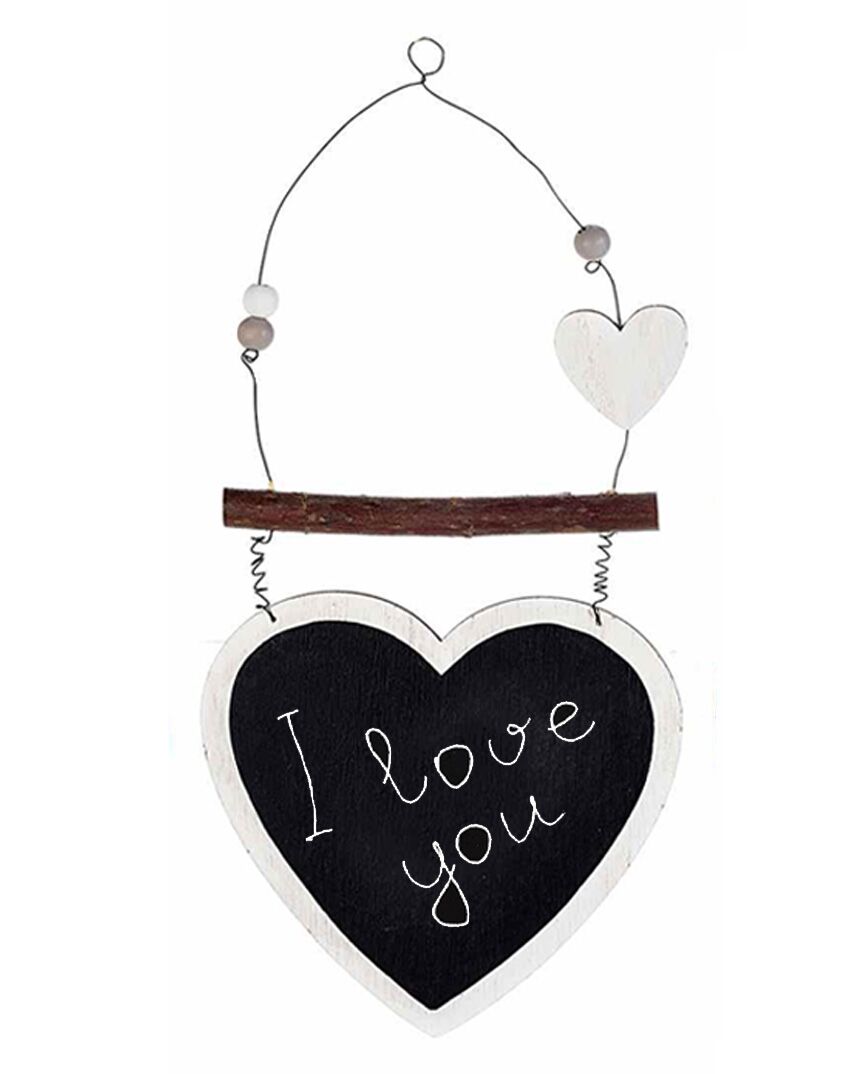 Lavagnetta da Appendere Shabby Chic in Legno e Metallo a Forma di Cuore Bordo Bianco – Idea Decorazione da Appendere Casa San Valentino