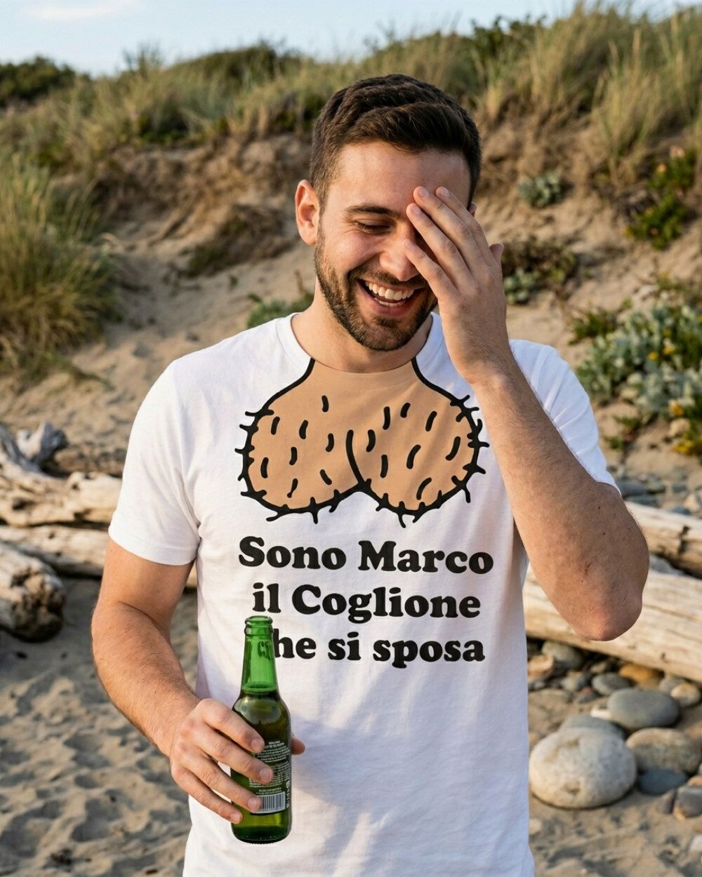 Qualcuno deve pur dircelo: sposarsi è una scelta coraggiosa. E se il tuo migliore amico ha deciso di fare il gran passo, l’addio al celibato è il momento perfetto per celebrarlo — con affetto, ironia e una maglietta che non lascia spazio all’immaginazione. La t-shirt personalizzata “Sono il coglione che si sposa” è nata esattamente per questo: per rendere lo sposo riconoscibile, inimitabile e perennemente imbarazzato per tutta la serata. Che siate in spiaggia, in montagna, in discoteca o in giro per la città, con questo set coordinato la comitiva avrà un’identità precisa — e un sacco di risate garantite.