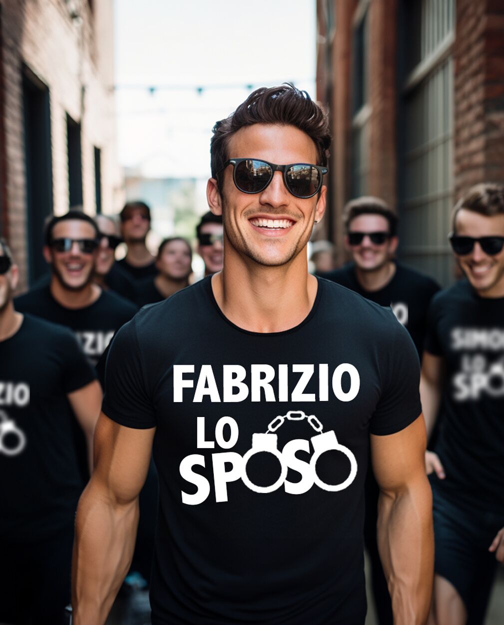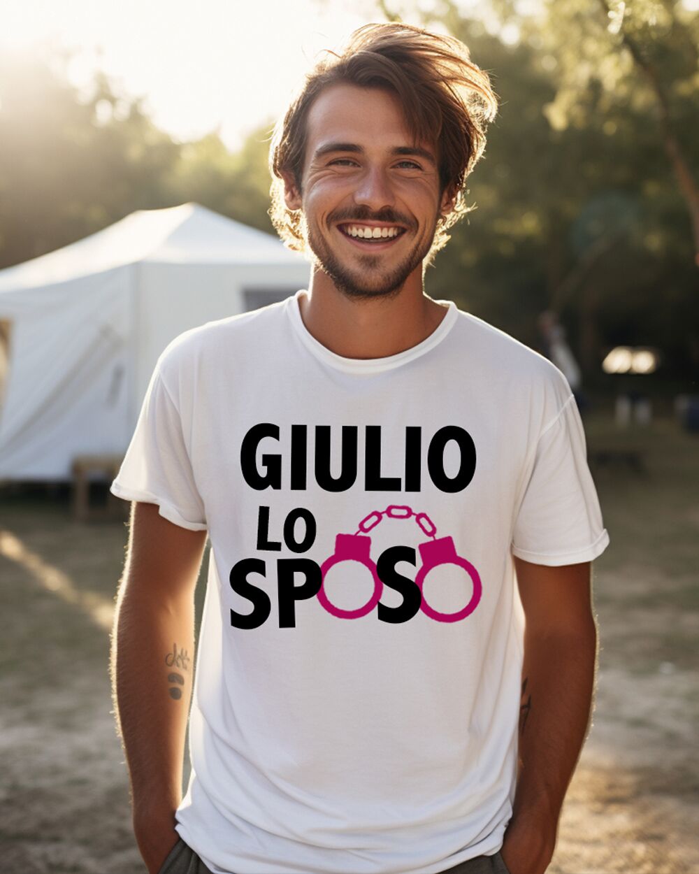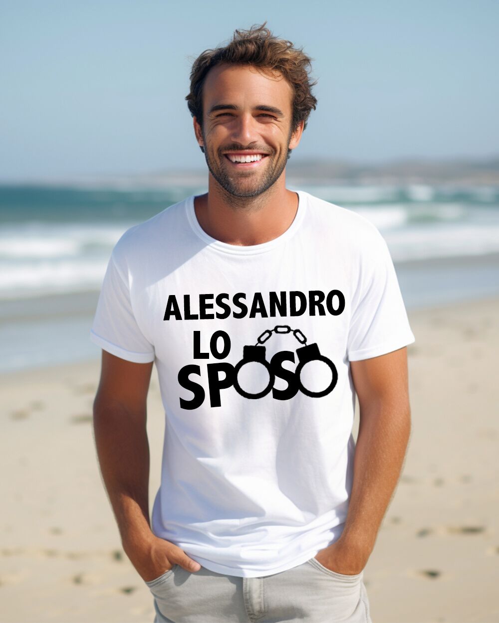 - Personalizzazione: Personalizzabile con nome dello sposo. La scritta “Lo Sposo” rimane standard. Possibilità di personalizzare il retro della t-shirt.