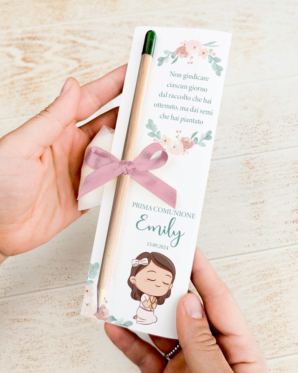 Matite Piantabili con Cartoncino Personalizzate con Bambina, Nome e Decori Floreali – Idea Bomboniera per Comunione Bambina