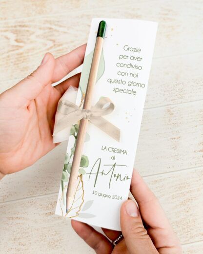 - Personalizzazione Unica: Ogni matita è abbellita da un cartoncino personalizzabile, dove è possibile scrivere una dedica speciale e il nome del cresimato. Questo dettaglio rende la bomboniera ancora più personale e memorabile, permettendo agli ospiti di portare con sé un ricordo unico dell’evento.
