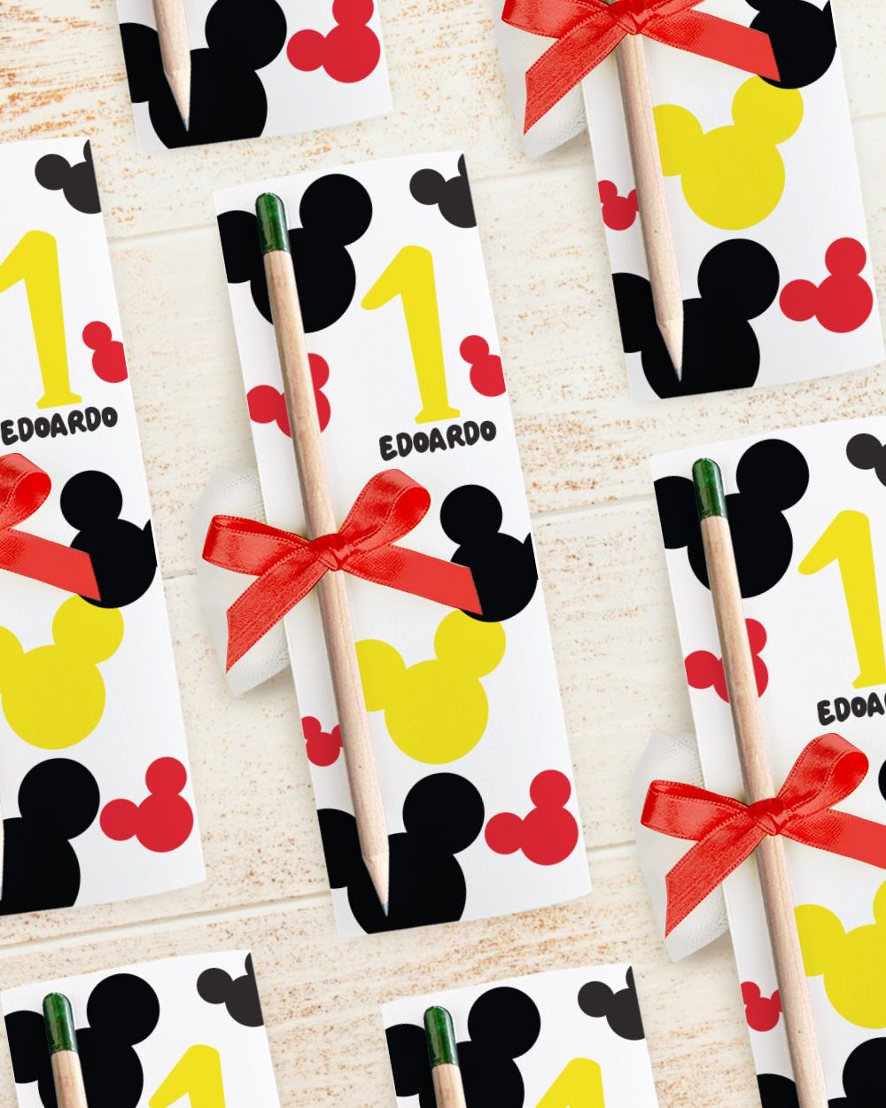 Personalizzazione Dettagliata: Ogni matita può essere personalizzata con il nome del bambino, gli anni compiuti, e decorata a tema topolino. Queste personalizzazioni rendono ogni matita un ricordo speciale e unico del suo primo grande giorno.