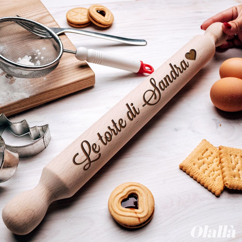 Mattarello in legno di faggio, artigianale Made in Italy personalizzato con incisione a laser.