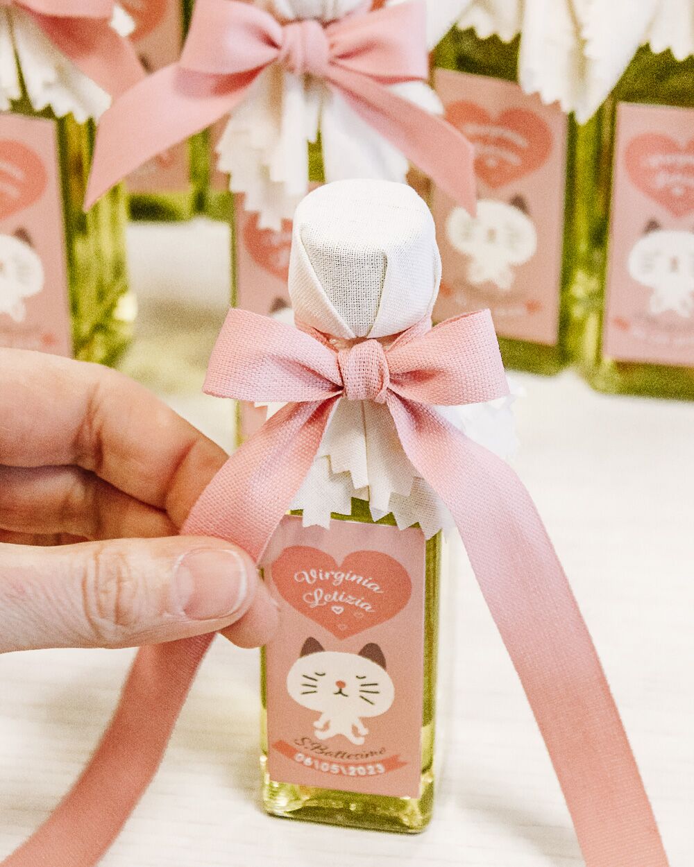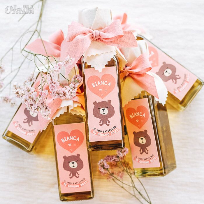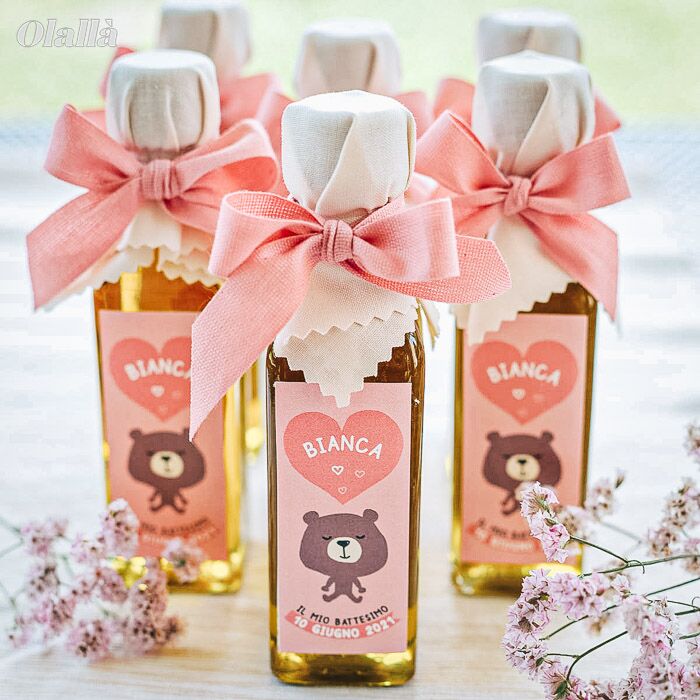 5 recensioni per Mini Bottiglietta di Olio con Etichetta Personalizzata Tenero Animaletto – Bomboniera Battesimo Bimba